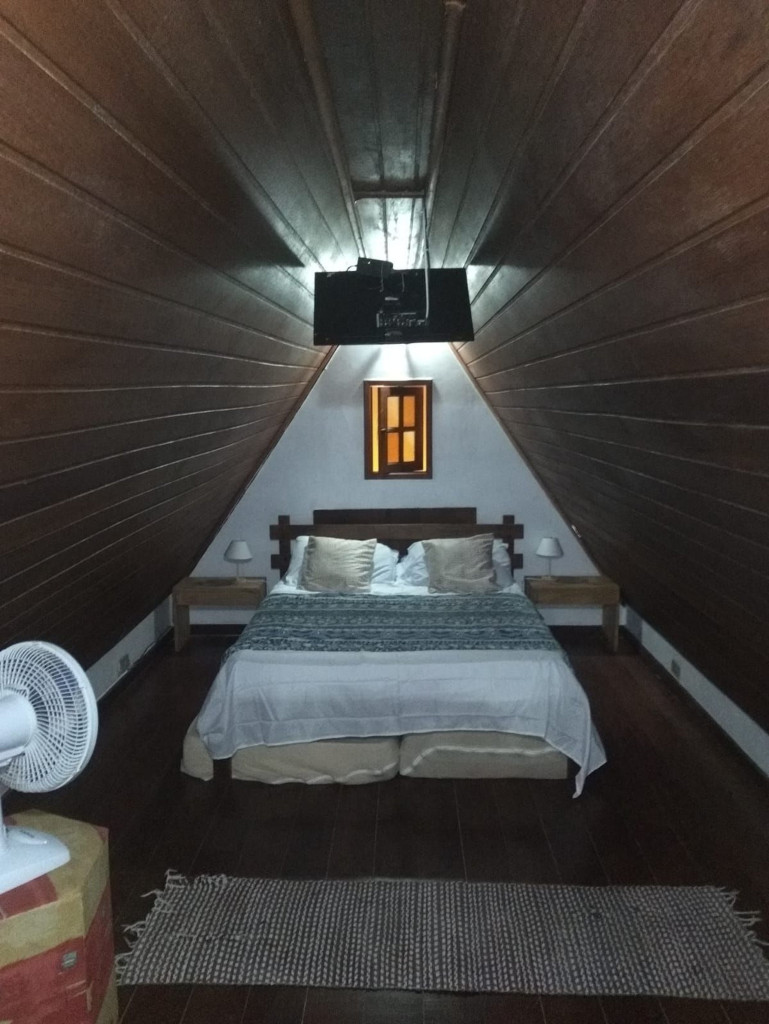 Quarto estilo inglês privativo em Chalé ao lado oo Dedo de Deus, Parque Nacional, CBF, Feirarte, Granja ComaryQuarto super ventilado, chega ser friozinho se deixar a janela aberta