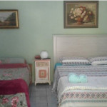 Acomodação tripla, com cerca de 12 m², uma cama de casal e uma cama de solteiro.