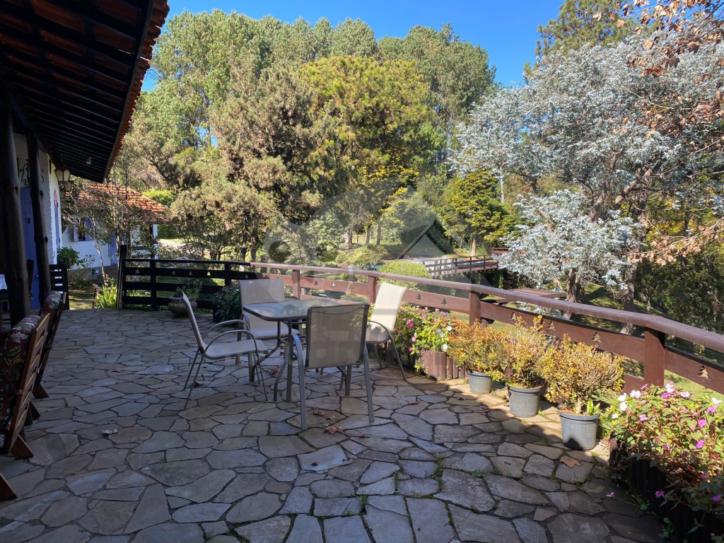 O espaço possui duas entradas com garagem, sendo uma para a casa e outra para o chalé. Ambos ficam próximas no mesmo terreno. São 2 vagas de garagem na casa e 1 vaga no chalé.