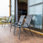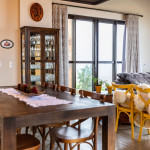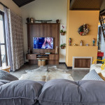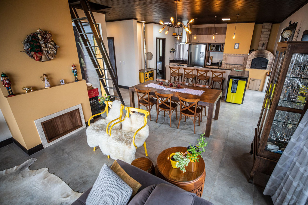 A casa Recanto das Carpas é uma casa de campo completa e sofisticada. Sala integrada com cozinha e mezanino, aprox. 140m2 de área útil construída (com varanda).