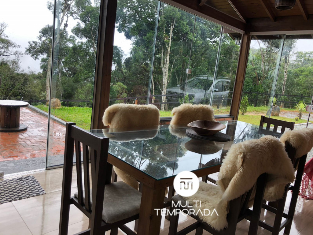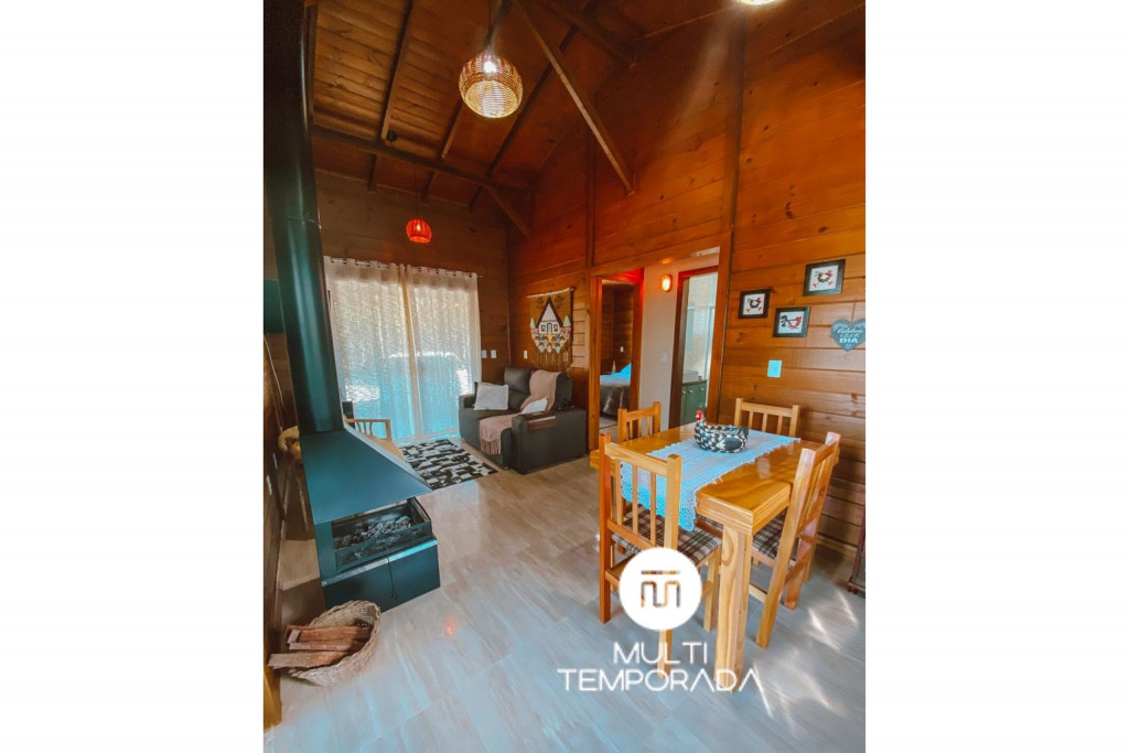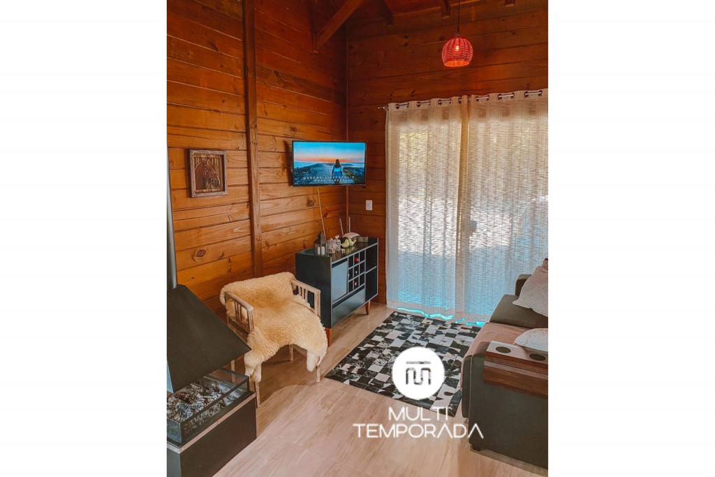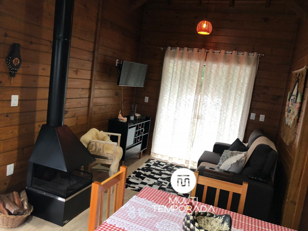 Sala de estar: Colchão adicional, sofá, TV Smart 32’’ e lareira interna;Temos uma infraestrutura imensa com mais de 60.000m² de terreno, repleto de natureza: florestas, represa com nascente dentro da propriedade, trilhas, área para recreação, animais no pasto, lago, entre outras opções para a sua melhor estadia. Além disso, oferecemos estacionamento amplo para 4 carros.A estrutura interna conta com cozinha completa: água quente na torneira, churrasqueira, fogão, fogão a lenha, forno, geladeira, freezer, micro-ondas, chaleira elétrica, sanduicheira, louças e talheres, itens básicos de cozinha, bem como eletrodomésticos de primeira linha e uma mesa de jantar para 6 pessoas. Além disso, temos internet WI-FI, rouparia de cama, cobertores e travesseiros e um belíssimo deck com fogo de chão, rede de descanso, bancos revestidos com pelego de ovelha e uma exuberante vista para as montanhas da região. Tudo isso para um melhor conforto dos nossos hóspedes, para que se sintam em casa, em um perfeito refúgio para descansar e desvendar o que há de melhor na Serra Catarinense.Observações:- Tomar cuidado com seu Pet: Pelagem nas roupas de cama, subir no sofá e nas camas;- Permitimos no máximo 2 Pets de pequeno ou médio porte (até 15kg);- Cobramos Taxa Pet: RS80,00 por Pet, por Estadia;- Temos torneira elétrica na cozinha e na varanda;