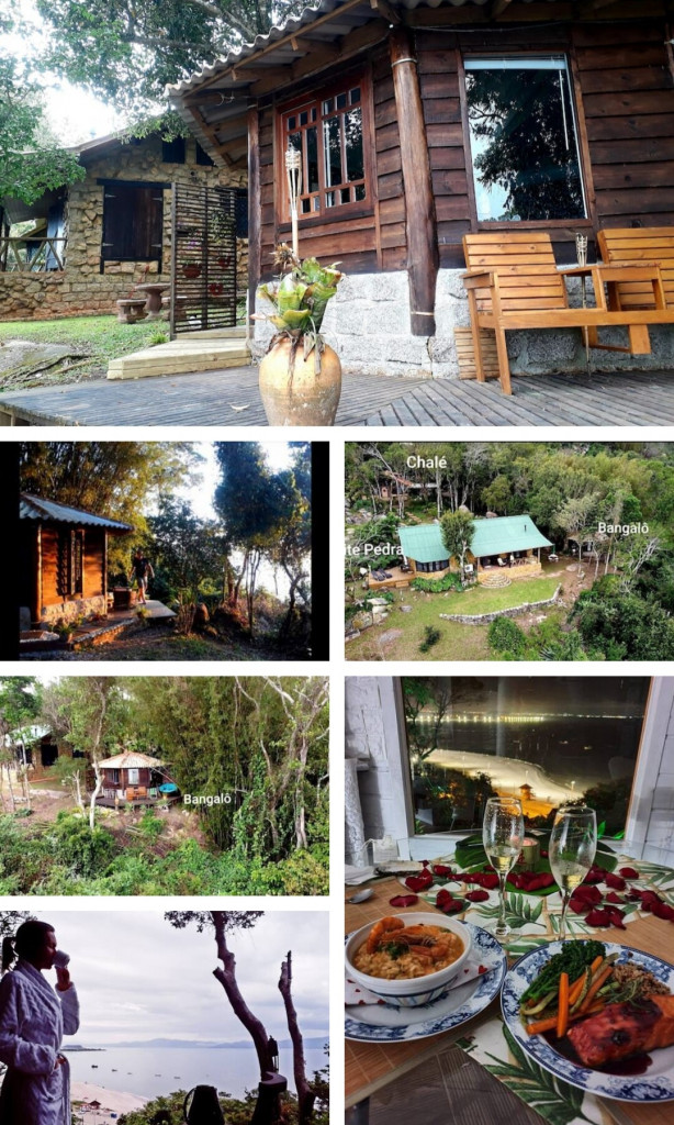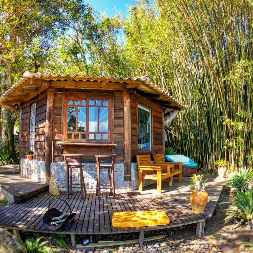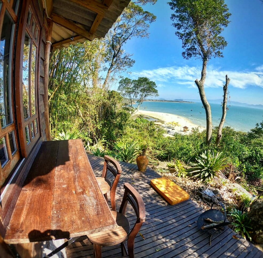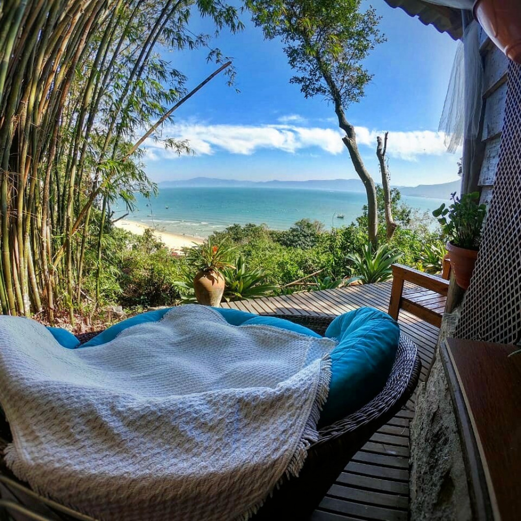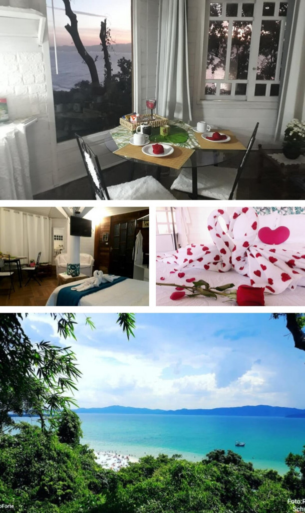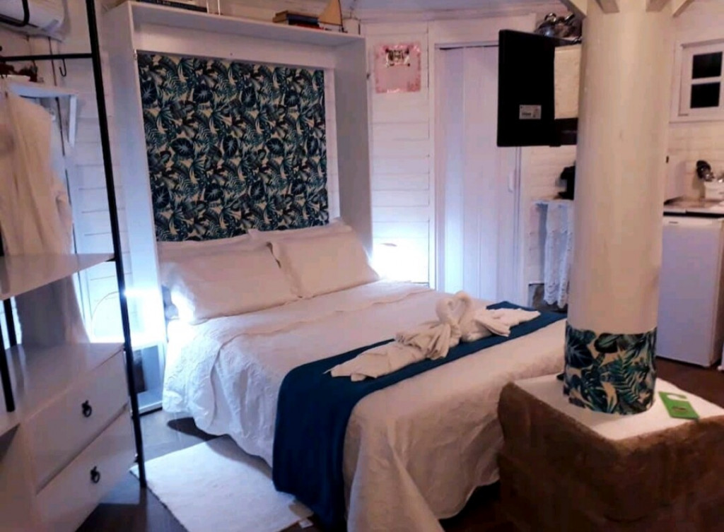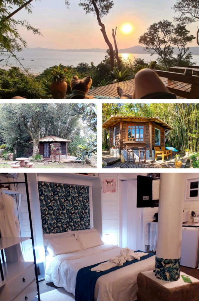 Bangalo de 18 m2 para casal um local espetacular com uma vista deslumbrante com cozinha básica, quarto com cama tv, wifi, closet, ar cond quente/frio tudo no mesmo espaço integrado dentro de uma propriedade particular de mais de 5 mil m2 bem arborizado, voce pode ir a pé ou de carro apenas 150 metros da praia do forte ou 400 metros de Jurere Internacional.Incluso Cesta de Café da manhã no check in de cortesia.