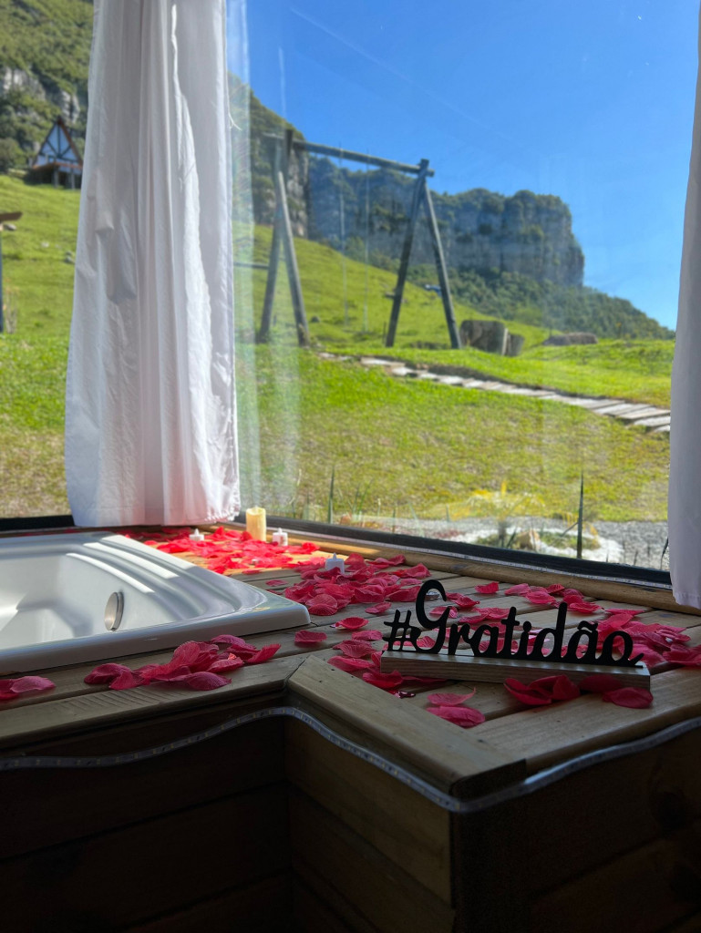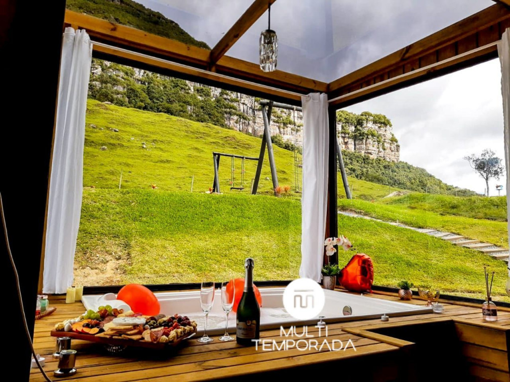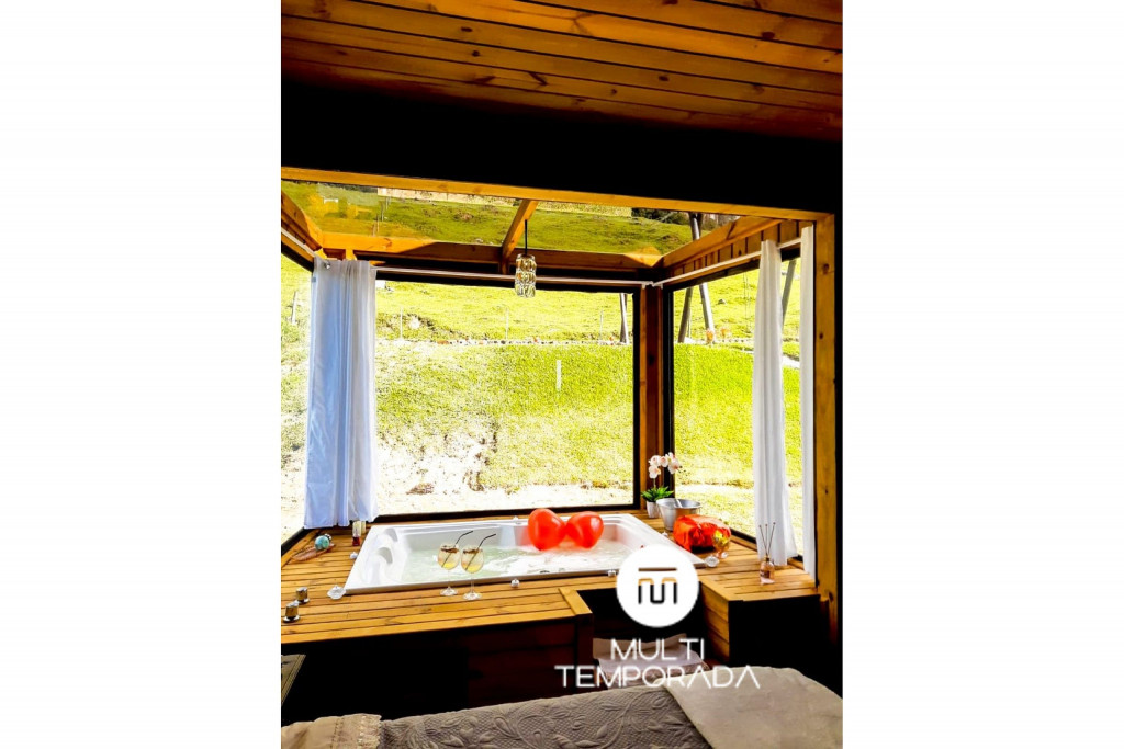 A Multitemporada apresenta o Refúgio Master com Banheira na Serra da Tartaruga, pertencente ao município de Alfredo Wagner/SC, um espaço aconchegante e agradável, perfeito para encontros familiares e com amigos. A propriedade tem como destaque a sua localização e vista, ficando em uma região montanhosa (serra), clima agradável, rodeado pela natureza e com uma vista exuberante para o pôr-do-sol.