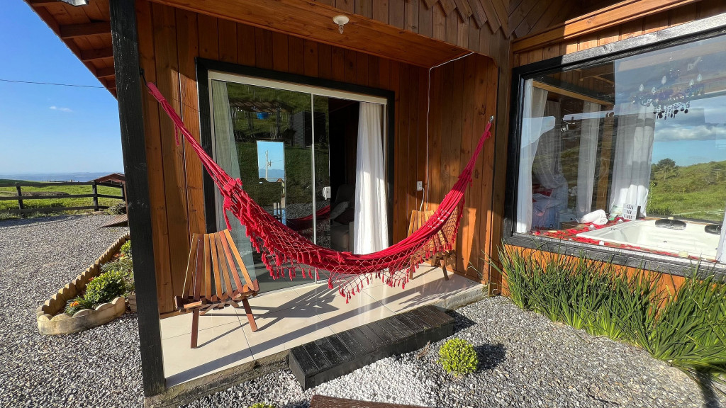 Sala de estar: Colchões adicionais (1 casal e 2 solteiros), TV Smart 32’’ e lareira interna;Temos uma infraestrutura externa de 900m² de terreno, repleto de natureza: floresta, parquinho infantil, horta, jardim, fogo de chão, área de churrasqueira aconchegante com portas janelas viradas para a paisagem, deck com excelente vista para as montanhas e pôr-do-sol e por fim, oferecemos estacionamento amplo para 3 carros.A estrutura interna de 56m² conta com cozinha completa: água quente na torneira, churrasqueira, fogão, forno elétrico, geladeira, micro-ondas, louças e talheres, itens básicos de cozinha, bem como eletrodomésticos de primeira linha: torradeira, batedeira e uma mesa de jantar. Além disso, temos uma linda banheira de hidromassagem e cromoterapia, adega com vinhos, internet WI-FI de qualidade para home-office, rouparia de cama com cobertores e travesseiros, rouparia de banho com uma toalha para cada hóspede e mais duas toalhas de rosto, ferro de passar e um belíssimo deck com vista para as montanhas da região. Tudo isso para um melhor conforto dos nossos hóspedes, para que se sintam em casa, em um perfeito refúgio para descansar e desvendar o que há de melhor na Serra Catarinense com extrema segurança e cordialidade por parte dos anfitriões.Distâncias:- 12km da Montanha do Soldado Sebold;- 12km do Centro de Alfredo Wagner;- 74km de Urubici;Observações:- Somos PET FRIENDLY (Aceitamos 2 Pets de pequeno porte por chalé).- Cobramos uma Taxa Pet de RS40,00 (Por Pet, por Estadia);- Tensão na Cidade: 220V - Cuidamos de cada detalhe da sua hospedagem e deixamos à vontade;