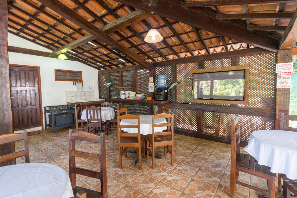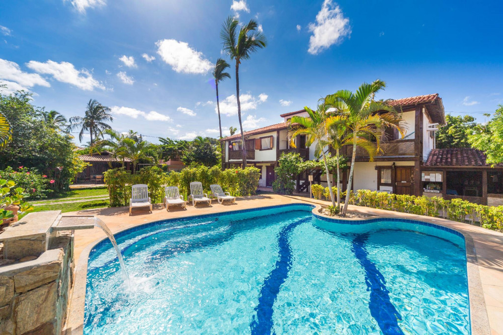 Residencial ideal para excursões, são 13 suítes, todas equipadas com ar condicionado e ventilador, frigobar, varanda, TV e WI-FI, redes artesanais, refeitório com cozinha industrial e churrasqueira ( panelas grandes, pratos e copos, com todos os utensílios, liquidificador, sanduicheira, bebedouro de água elétrico, ( estacionamento próprio e piscina, à 100mts da praia, 5 min. de caminhada até os melhores complexos de lazer, Tôa-Tôa e Axé Moi e à 5 min. de carro do centro de Porto Seguro.