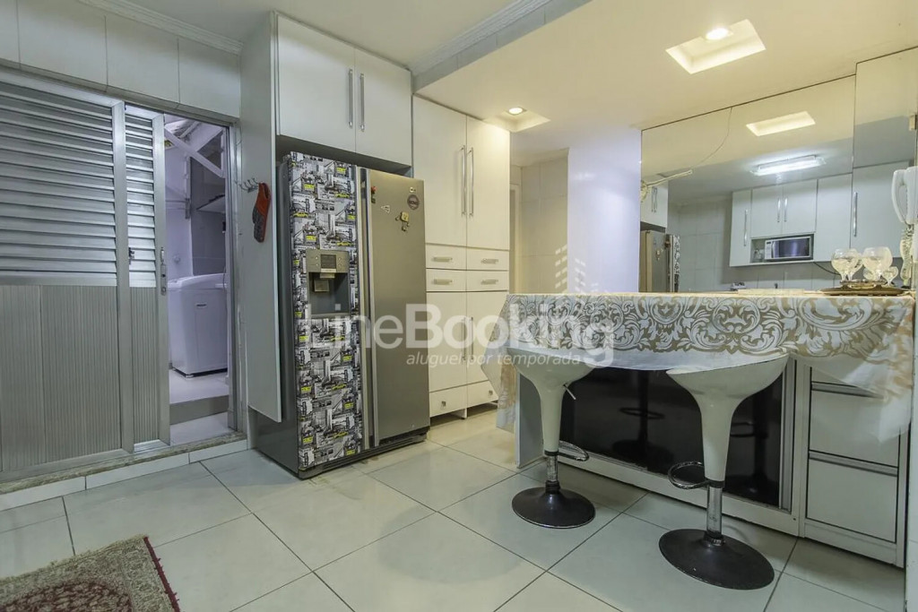 · Cozinha: Geladeira duplex Inox, Micro-ondas, Fogão 5 bocas, Mesa para refeição 4 lugares, cafeteira de capsula e demais utensílios.
