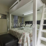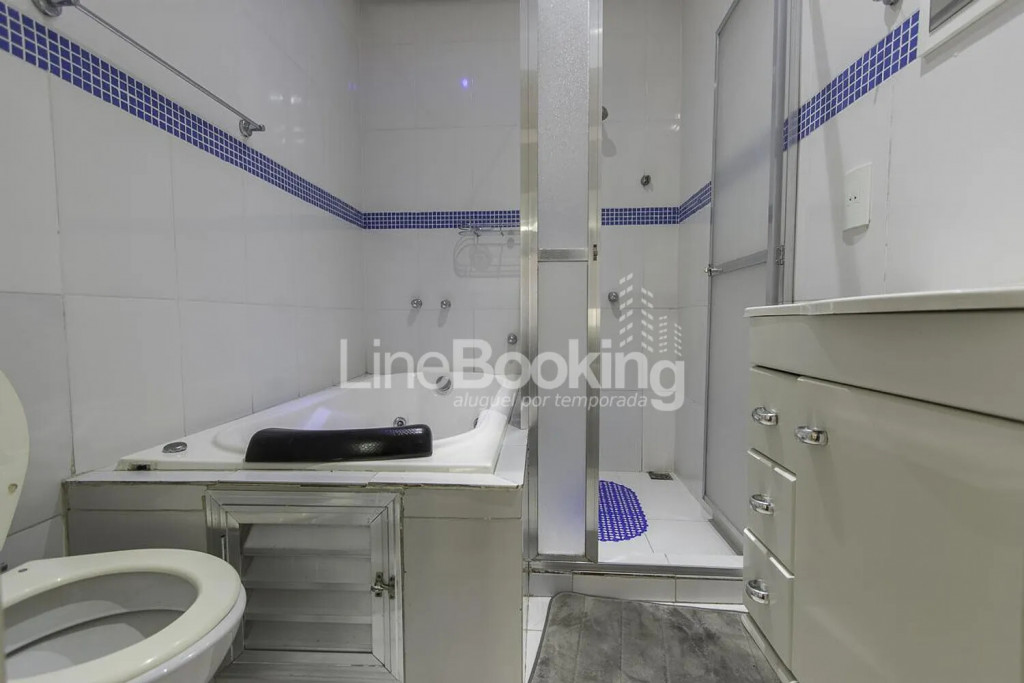 · Suíte 3: Cama Queen, Mezanino com dois colchoes ortopédico de solteiro (reversível para casal), guarda roupa, ar condicionado 18.000BTU, banheiro com Hidromassagem, TV LCD