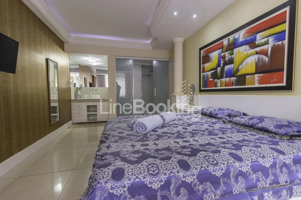 · Suíte 4 (Master): cama Queen, TV LCD, ar condicionado, decoração elegante