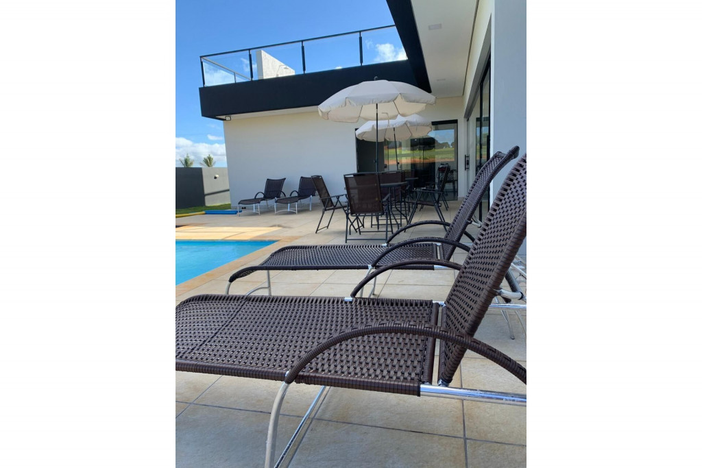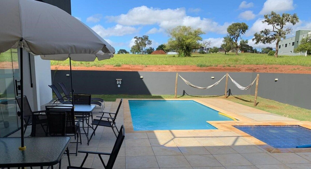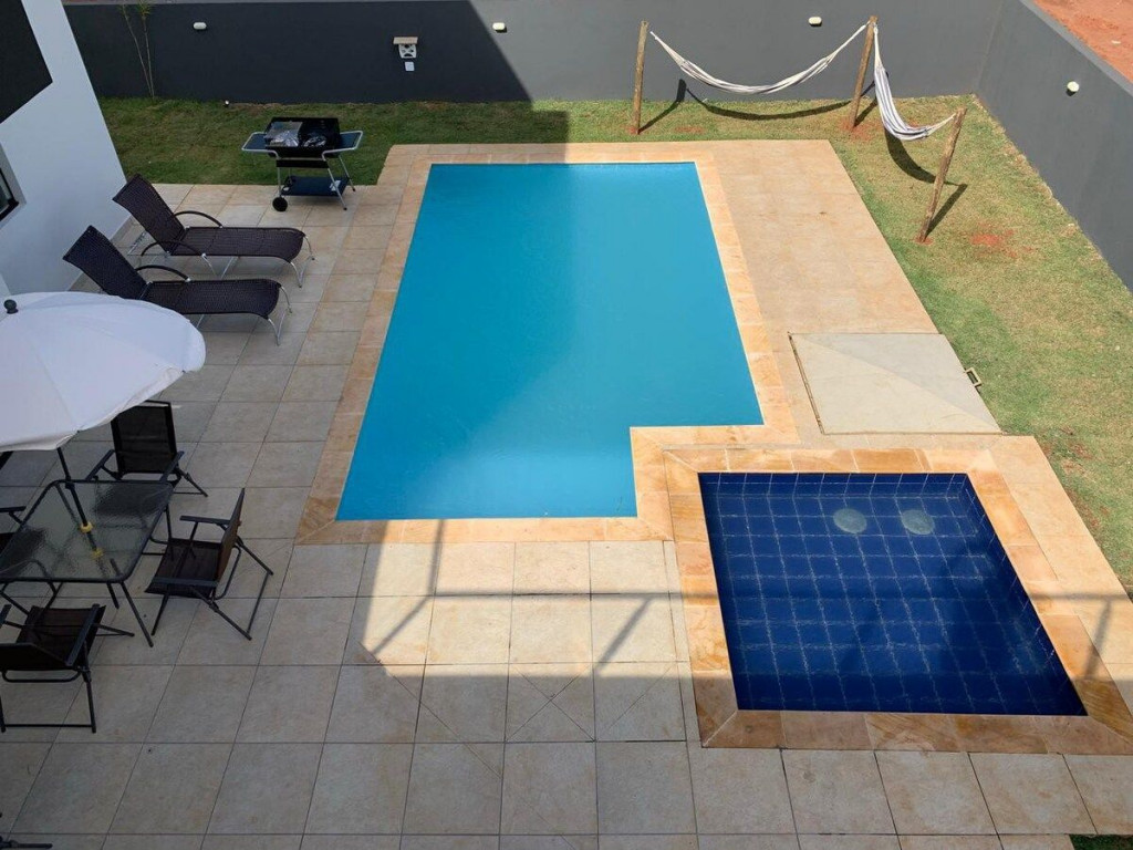 Projeto moderno, aconchegante e único! TÉRREO: amplas suítes, cozinha completa, sala, piscina adulto e infantil, churrasqueira móvel e redes de balanço.