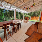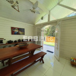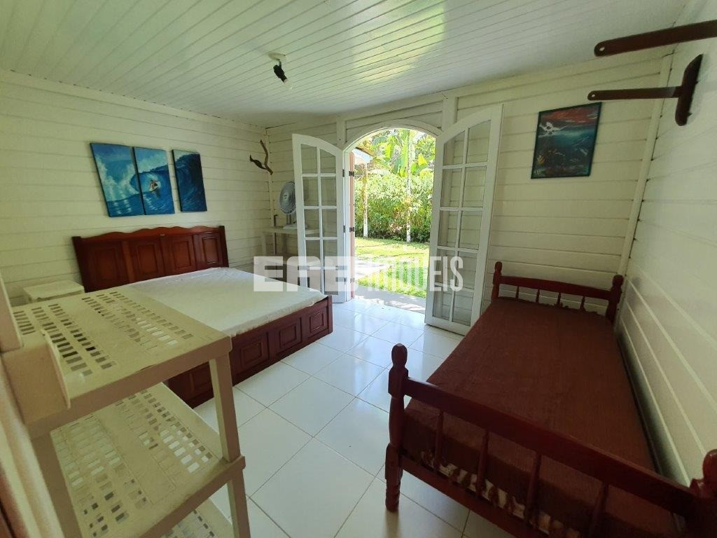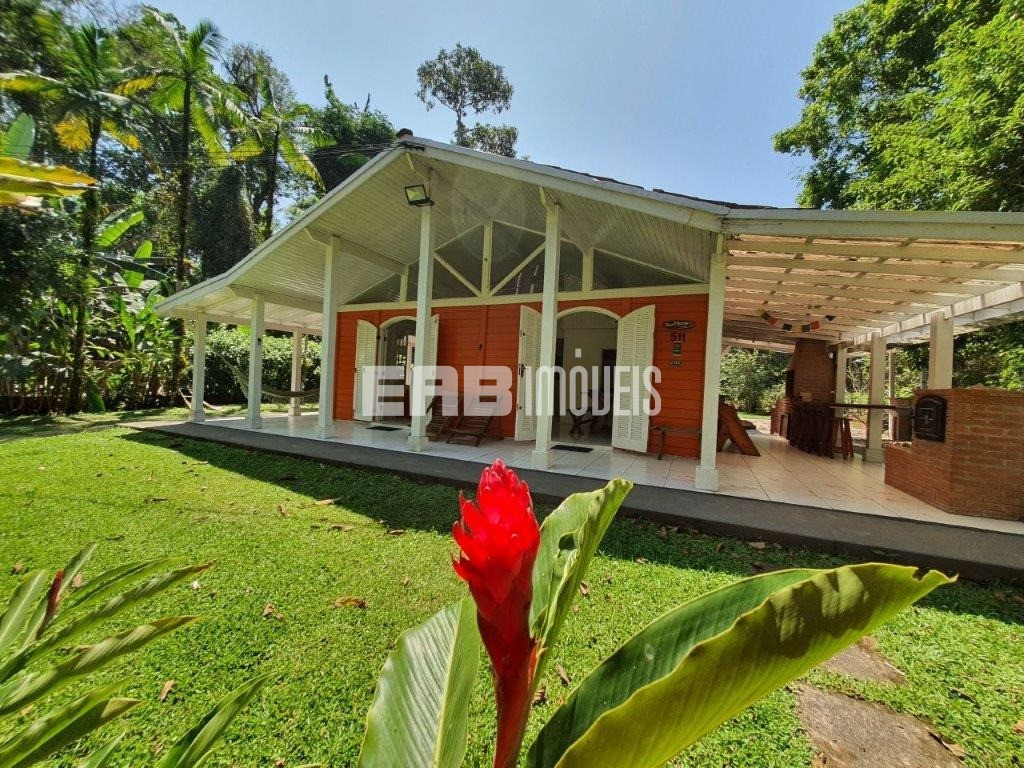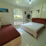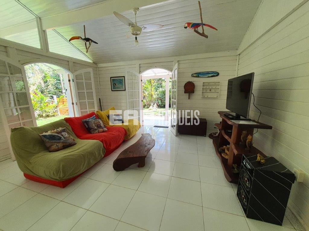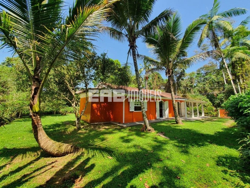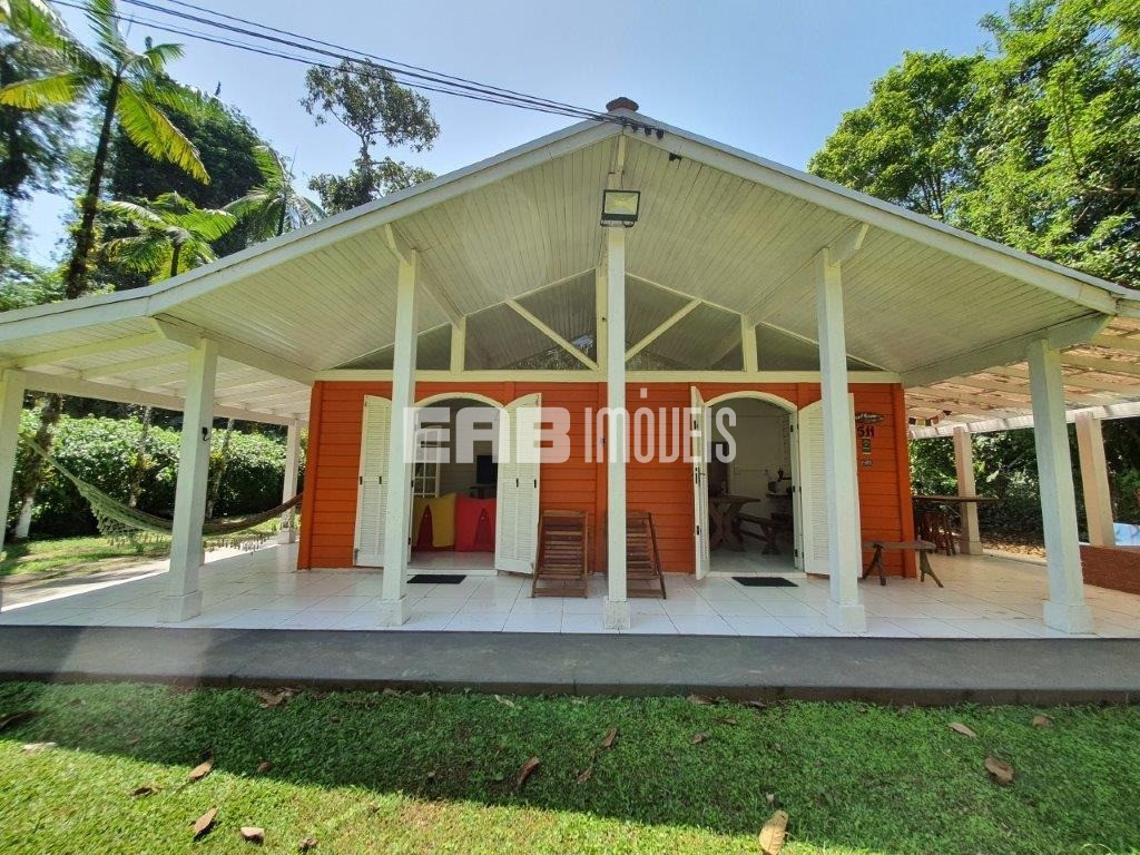 Aconhegante casa de madeira em rua tranquila na praia de Itamambuca, localizada para o lado de cima da avenida e rodeada pela mata preservada.