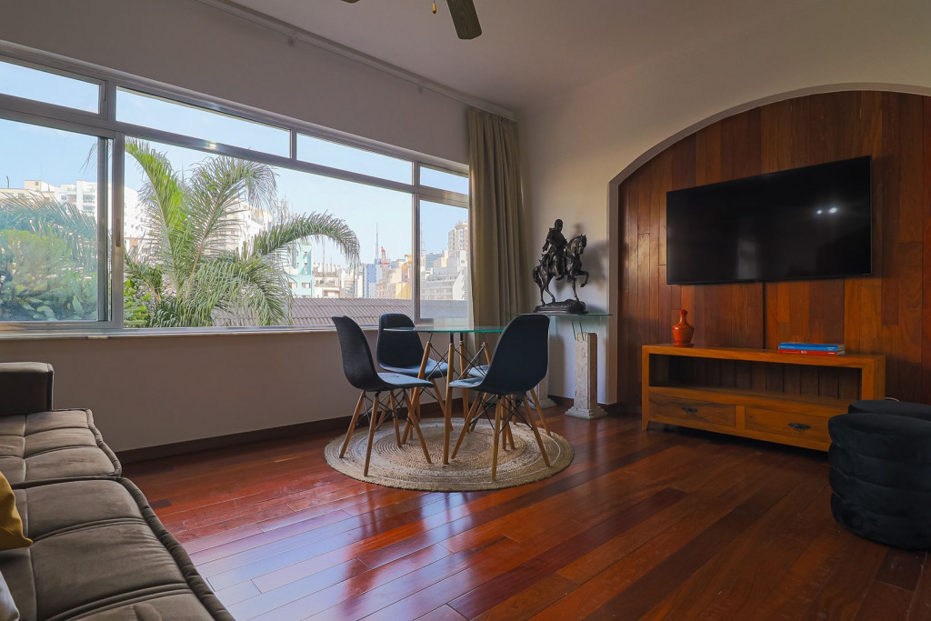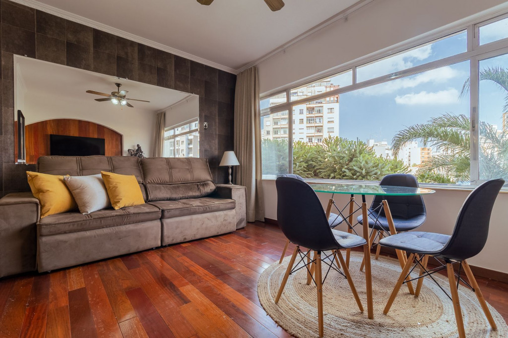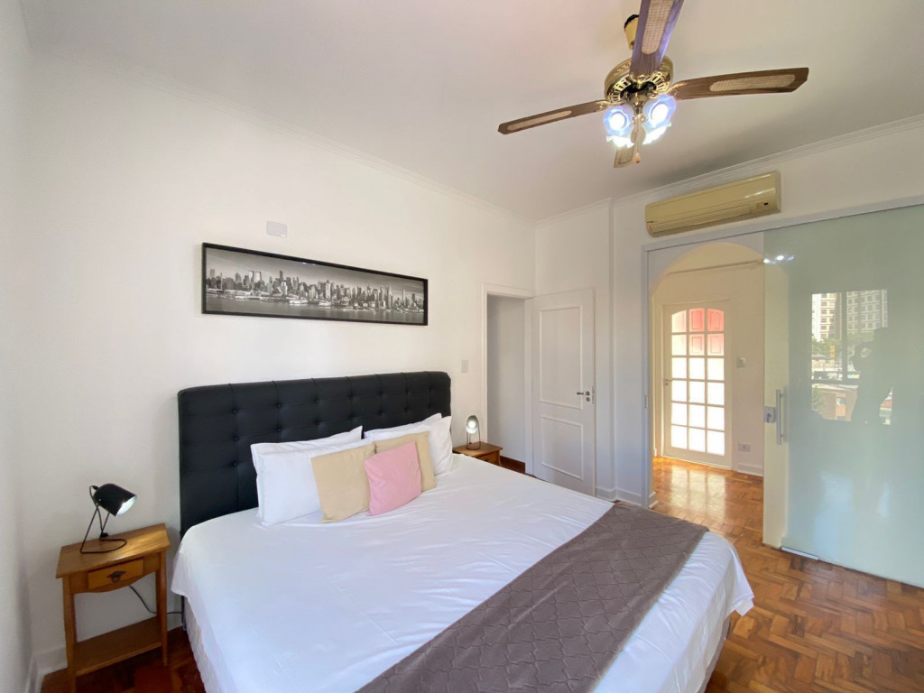 Apartamento de dois quartos confortável e decoração acolhedora. Conta com uma ampla sala de estar e jantar e uma cozinha completa.Apenas 6 minutos de caminhada até o hospital Sírio Libanês e 10 minutos ate o Hospital 9 de julho.Atenção: Ar condicionado sem funcionar temporariamente
