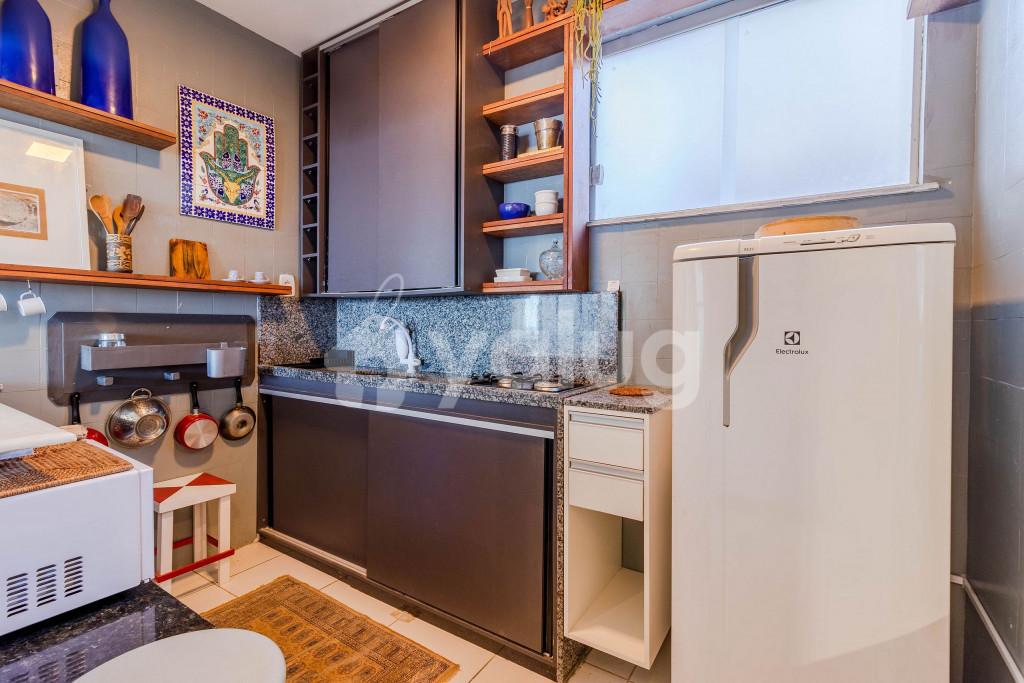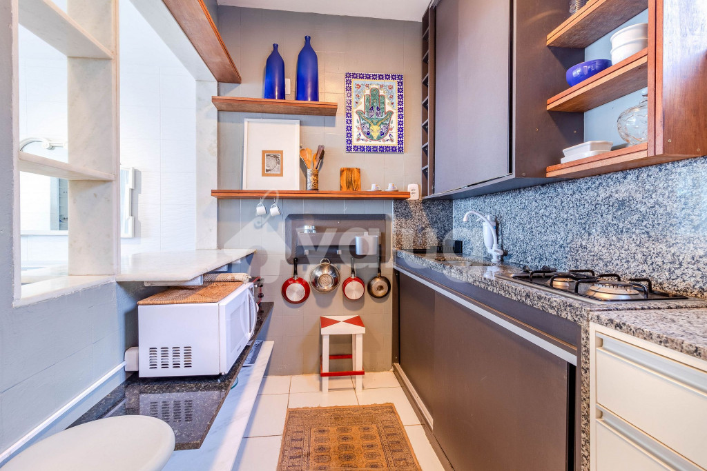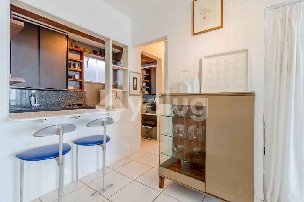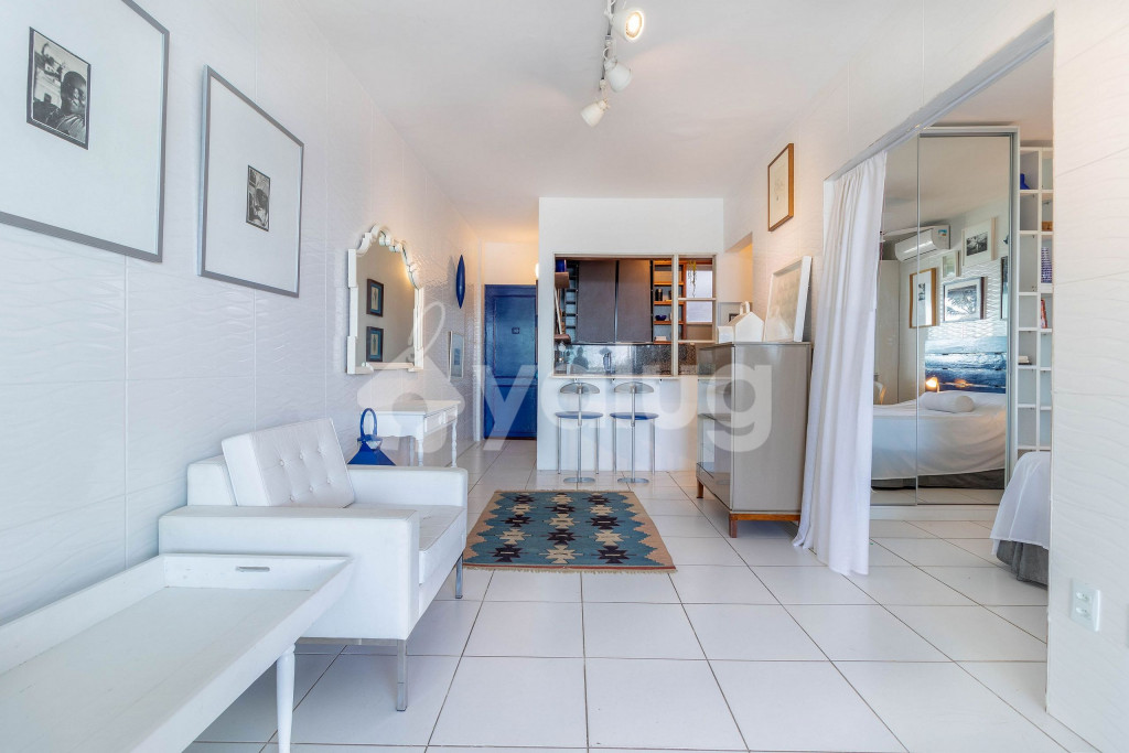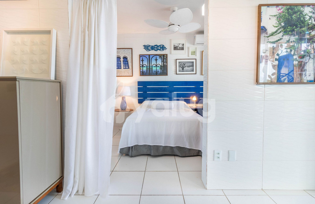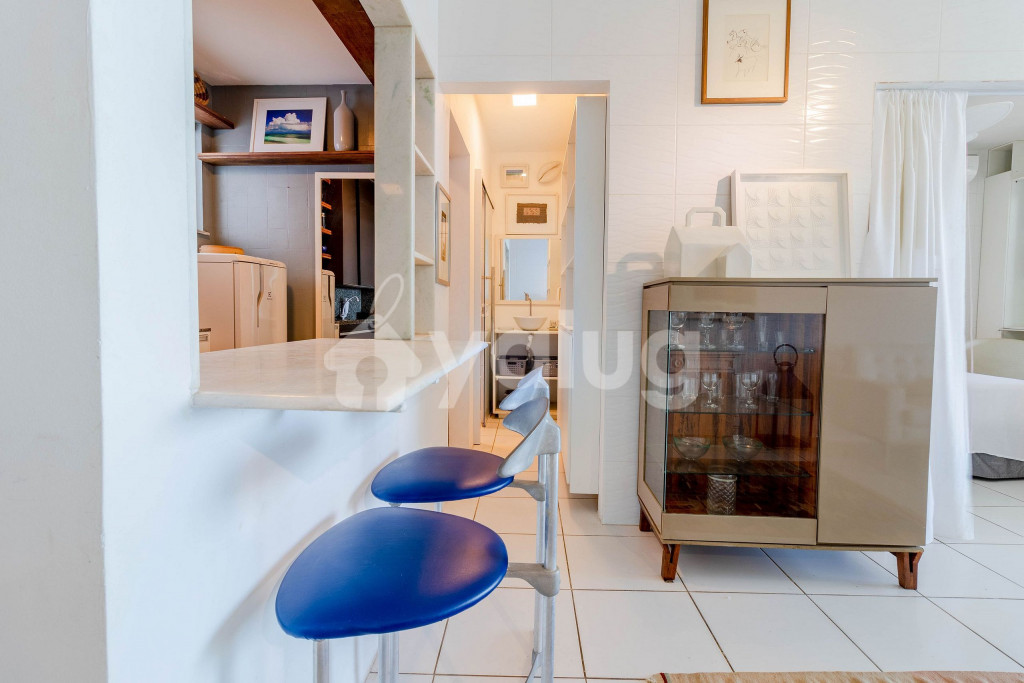 O apartamento quarto e sala dispõe de ar condicionado tipo Split no quarto, armários, além de uma decoração especial feita pelo designer Nino Nogueira, que entrega o apartamento repleto de arte e bom gosto.