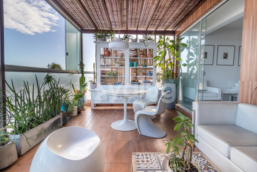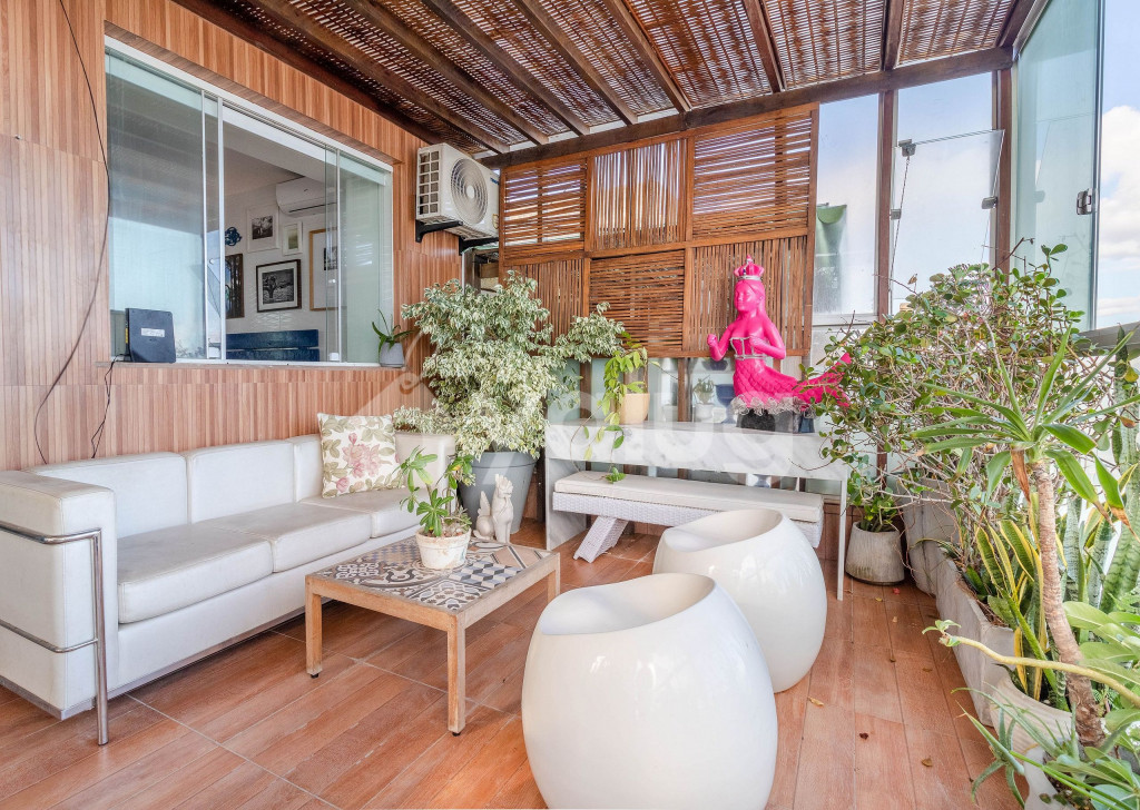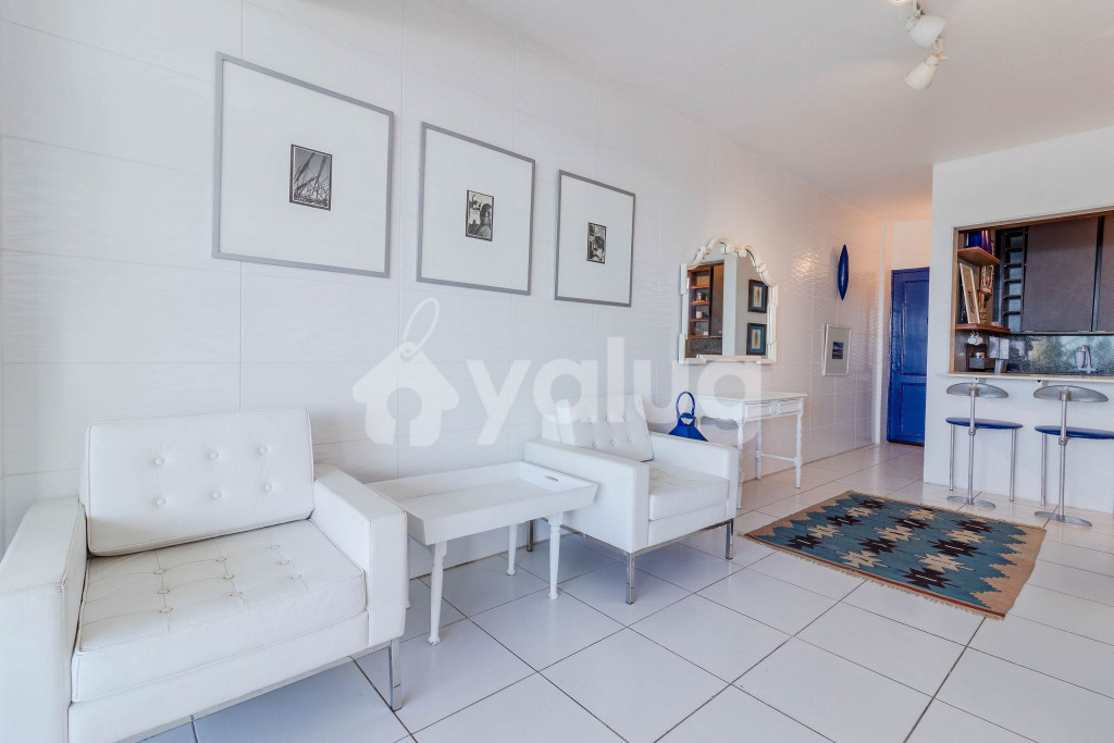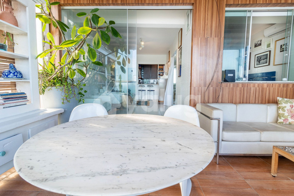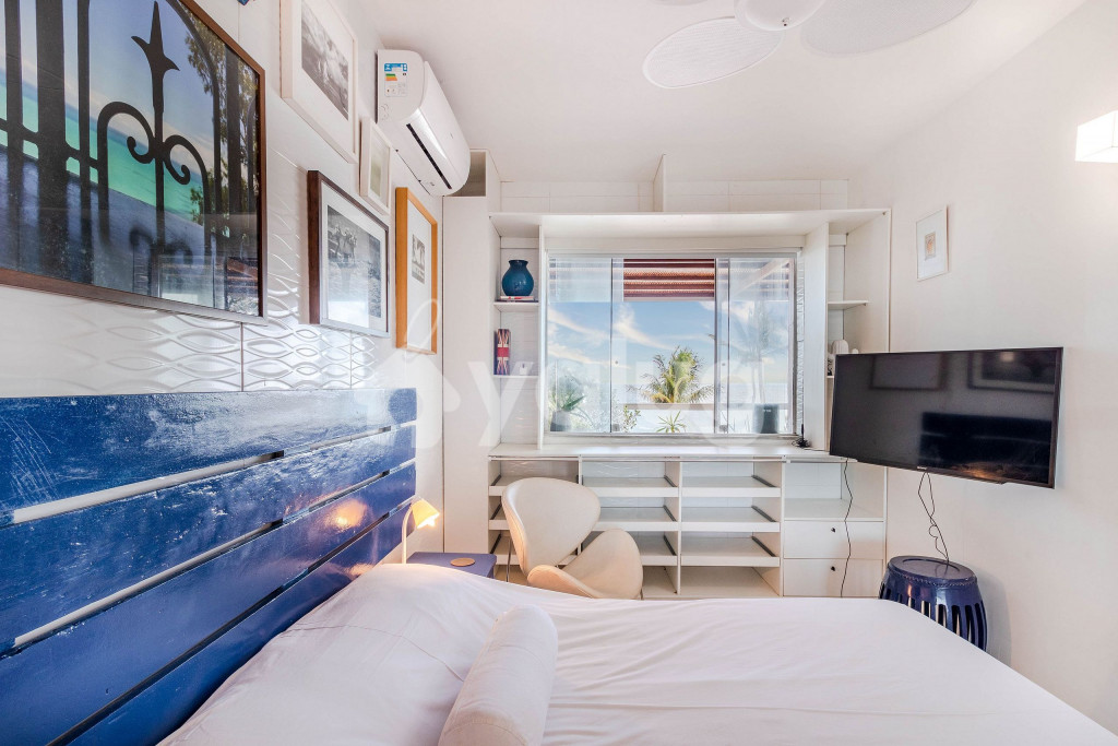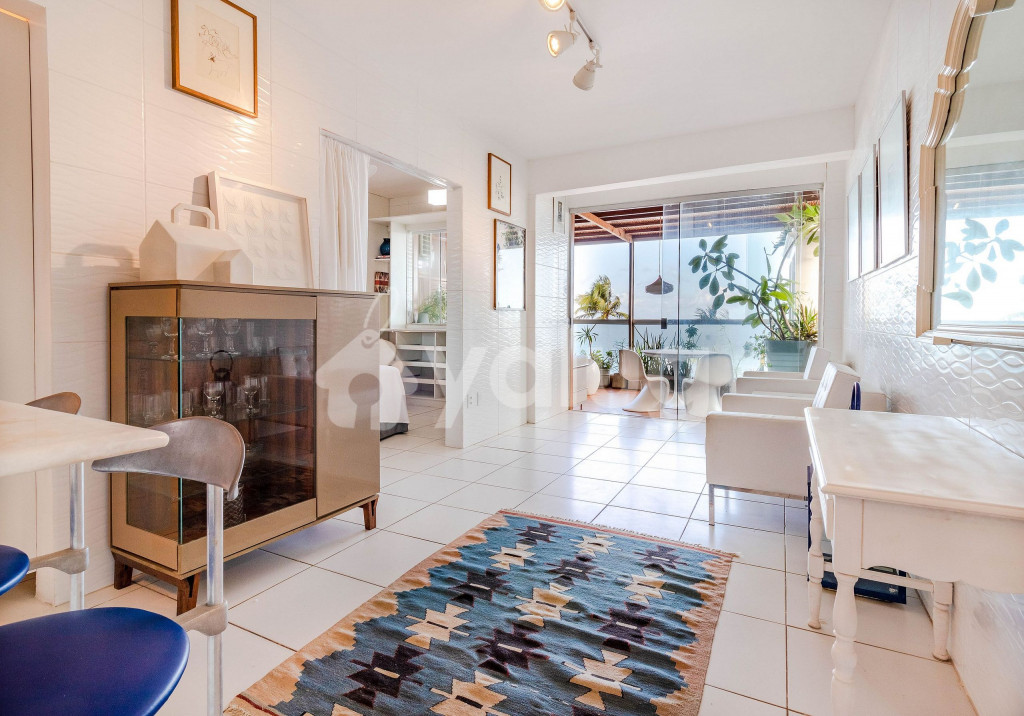 O apartamento quarto e sala dispõe de ar condicionado tipo Split no quarto, armários, além de uma decoração especial feita pelo designer Nino Nogueira, que entrega o apartamento repleto de arte e bom gosto.