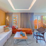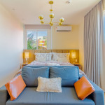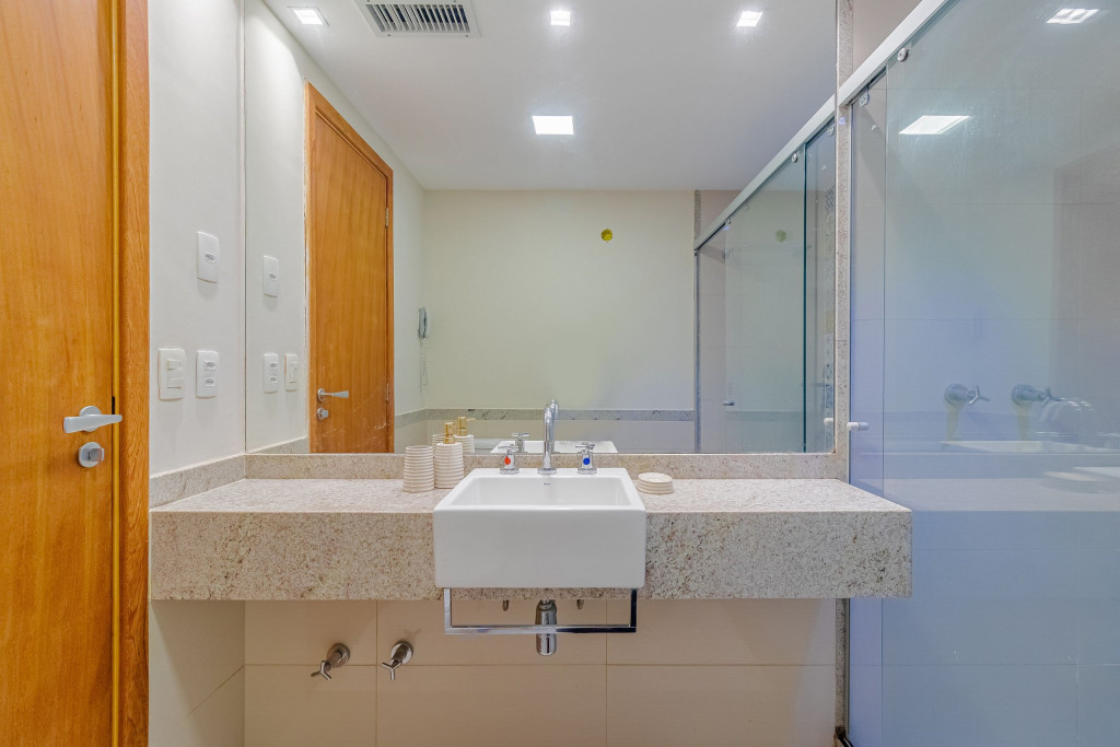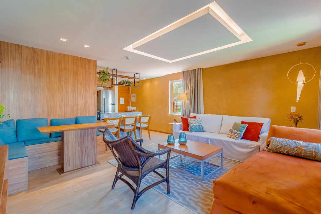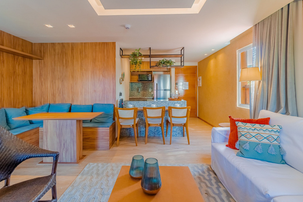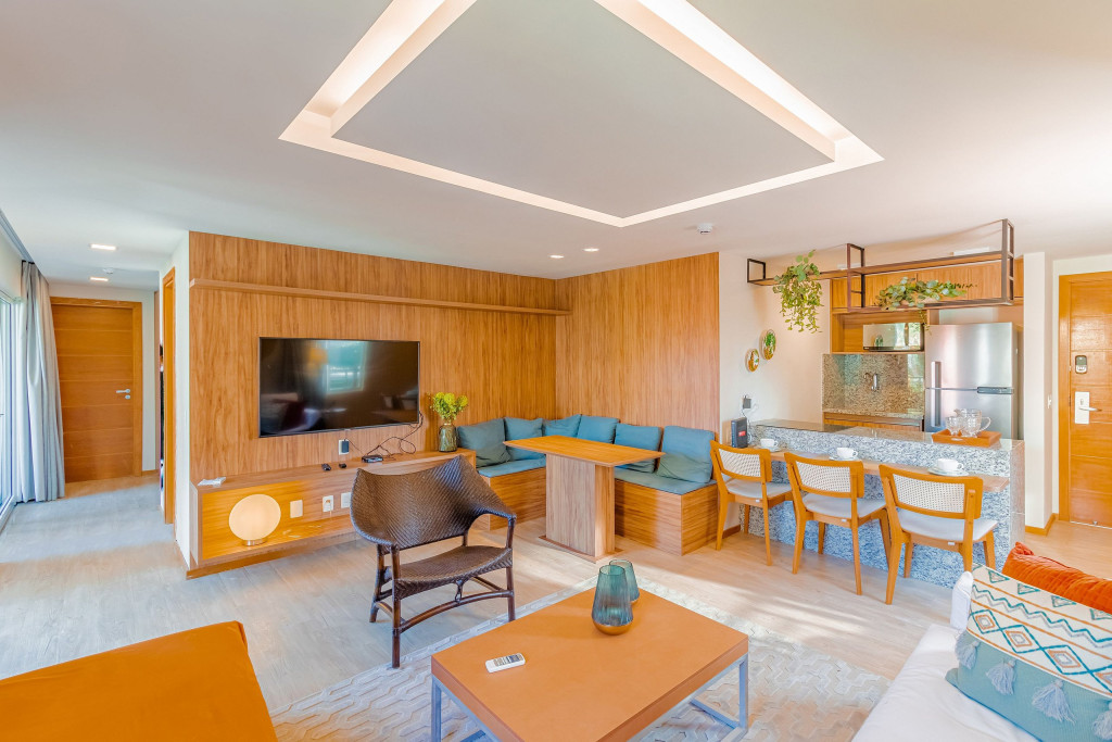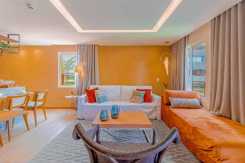 A composição dos quartos é da seguinte forma:Suíte 1: 1 cama queen, 1 sofá-cama, ar condicionado split, armário, frigobar, cortina blackout e Smart Tv (c/ tv a cabo).
