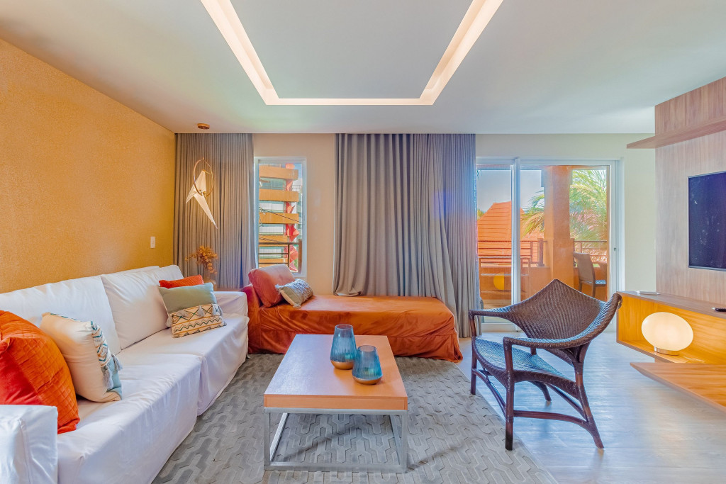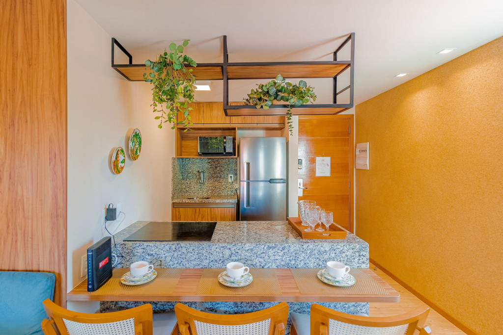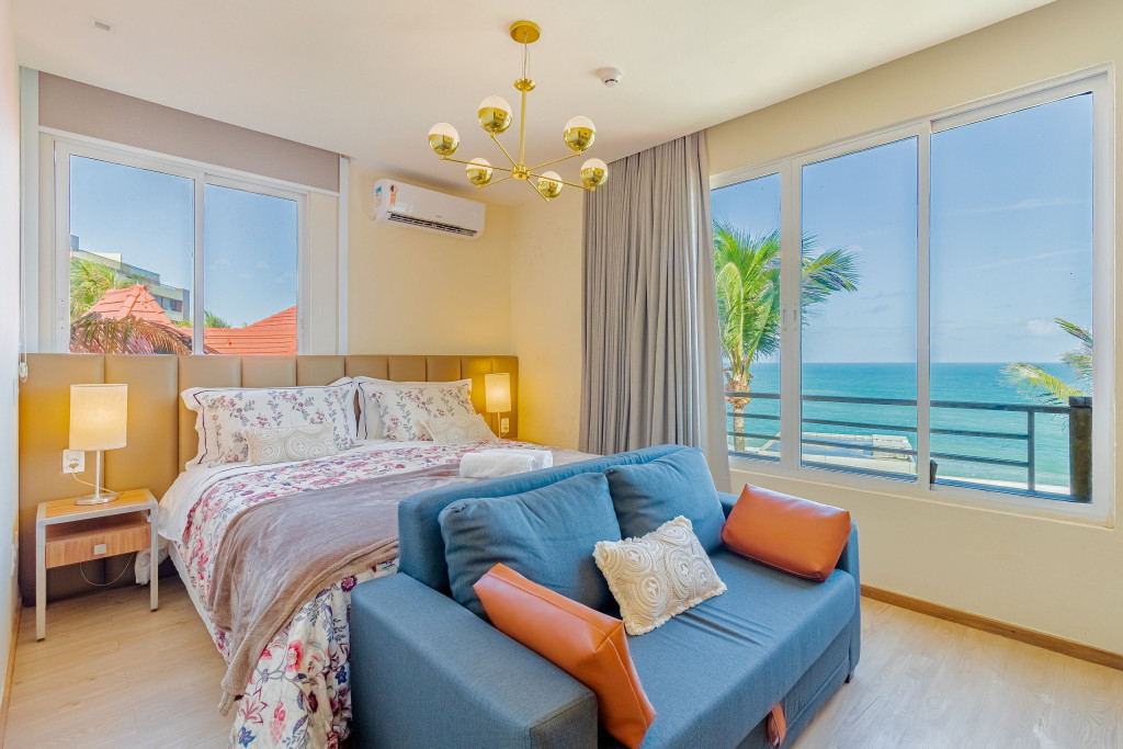 Localizado no 2º andar, o apartamento dispõe de 1 suíte com ar condicionado e Smart TV, Wi-fi, sala de estar aconchegante, cozinha completa e varanda com incrível vista para a praia. Além disso, o prédio academia, sauna e serviço de camareira de segunda a sábado.