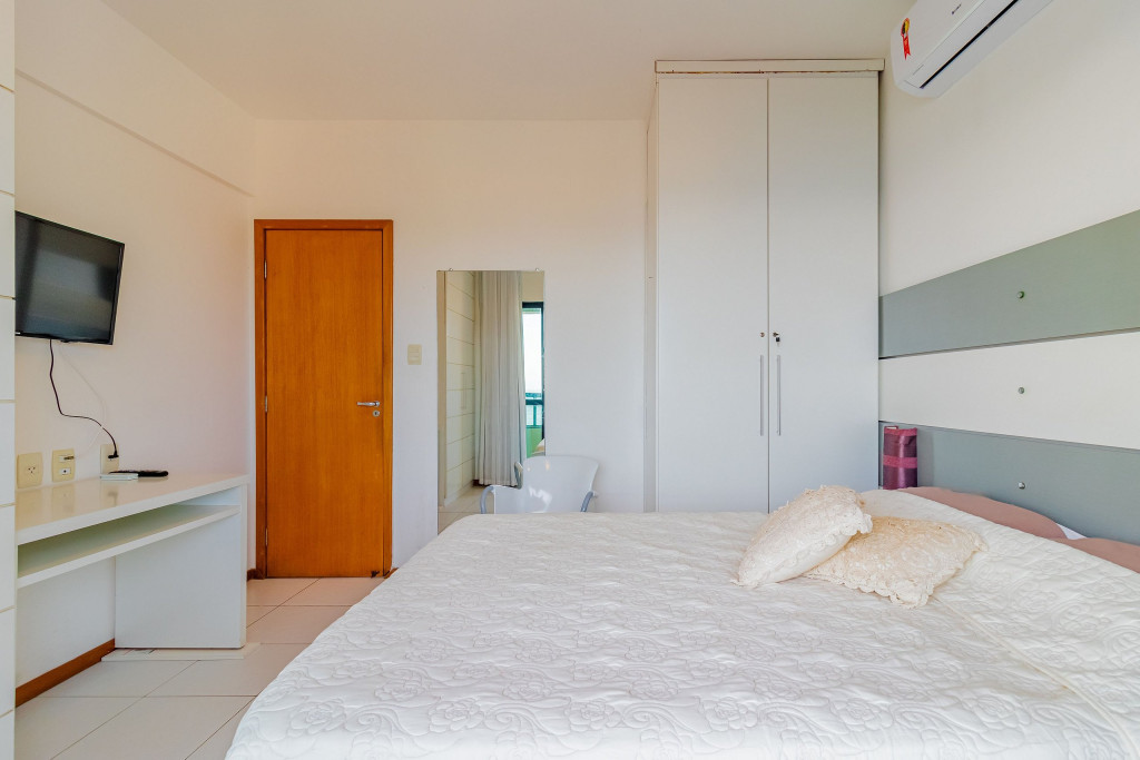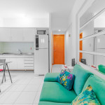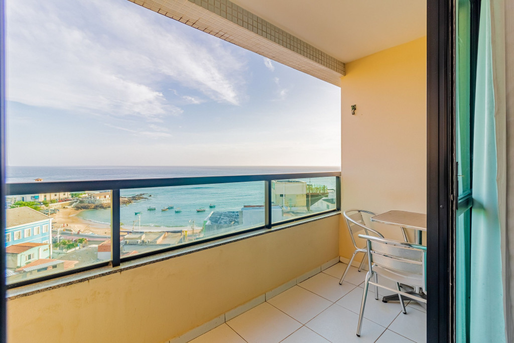 Localizado no 3º andar, meu apartamento dispõe de 1 quarto com ar condicionado tipo Split e Smart TV com canais a cabo (Sky) e sala de estar integrada com a cozinha. O melhor de tudo é a varanda, com linda vista para a praia. Além disso, o prédio oferece piscina e camareira todos os dias!