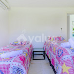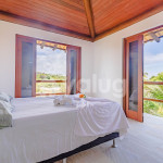 Suíte 4 (superior): 1 cama queen, 1 cama casal, ar condicionado split, armário, tv e vista.