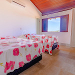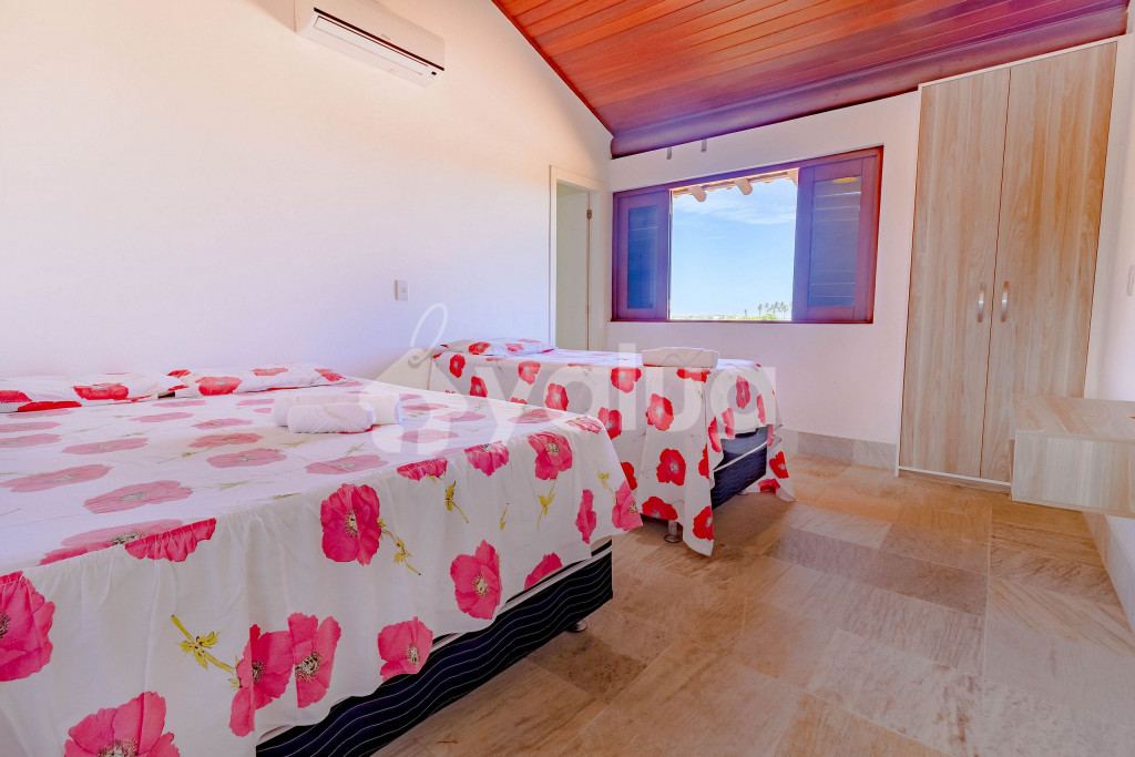 Suíte 3 (superior): 1 cama casal, 1 cama solteiro, ar condicionado split, armário e vista.