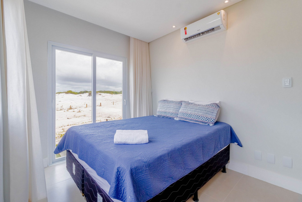 A composição dos quartos é da seguinte forma:Quarto 1 (Térreo): 1 cama queen, ar condicionado tipo split, cortina blackout e armário;Suíte 1 (Superior): 1 cama queen, ar condicionado tipo split, cortina blackout e armário;Suíte 2 (Superior): 2 bicamas, ar condicionado tipo split, cortina blackout e armário;Suíte 3 (Superior): 2 bicamas, ar condicionado tipo split, cortina blackout e armário;Suíte 4 (Superior): 1 cama queen, ar condicionado tipo split, cortina blackout e armário;Obs.: Possuímos 1 berço portátil.