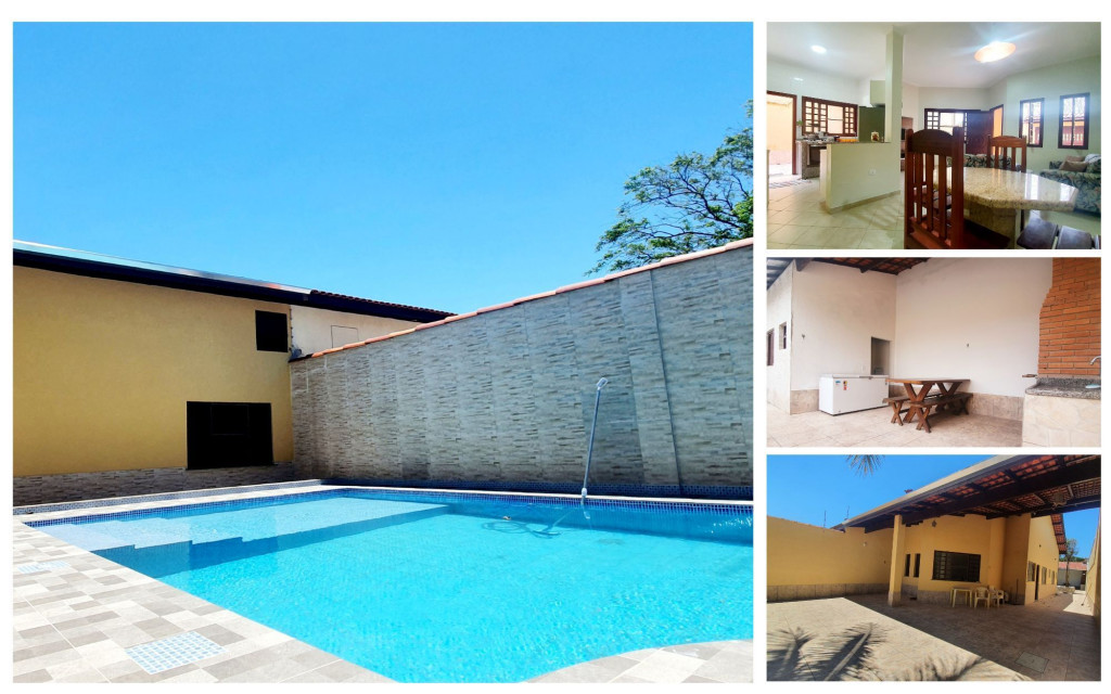 4 dormitórios (um deles na área externa) , 3 banheiros, acomoda até 12 pessoas