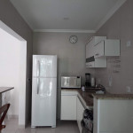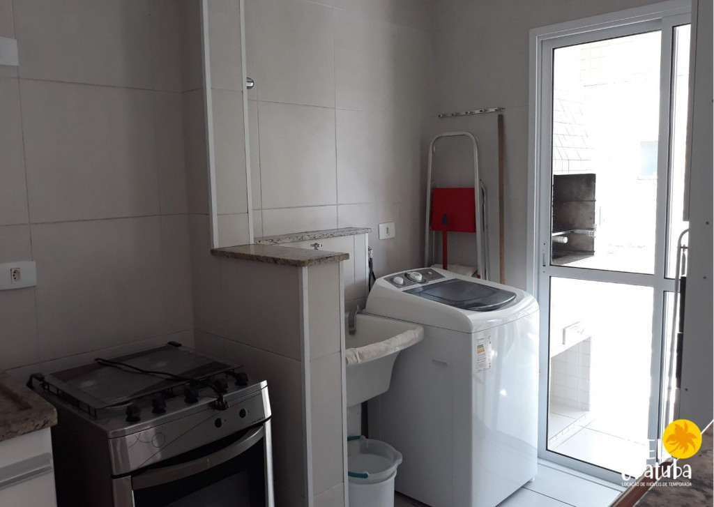Serviço de cozinha: pratos, talheres, copos, panelas, tabua de carnes, eletroportáteis (liquidificador e sanduicheira), micro-ondasMáquina de lavar roupas