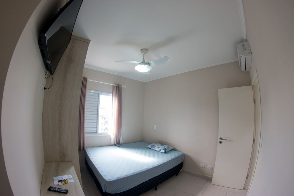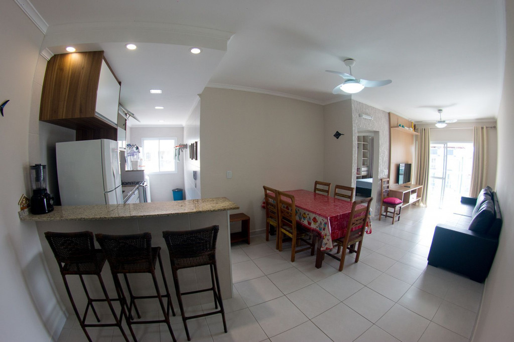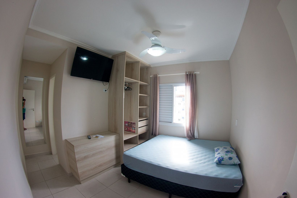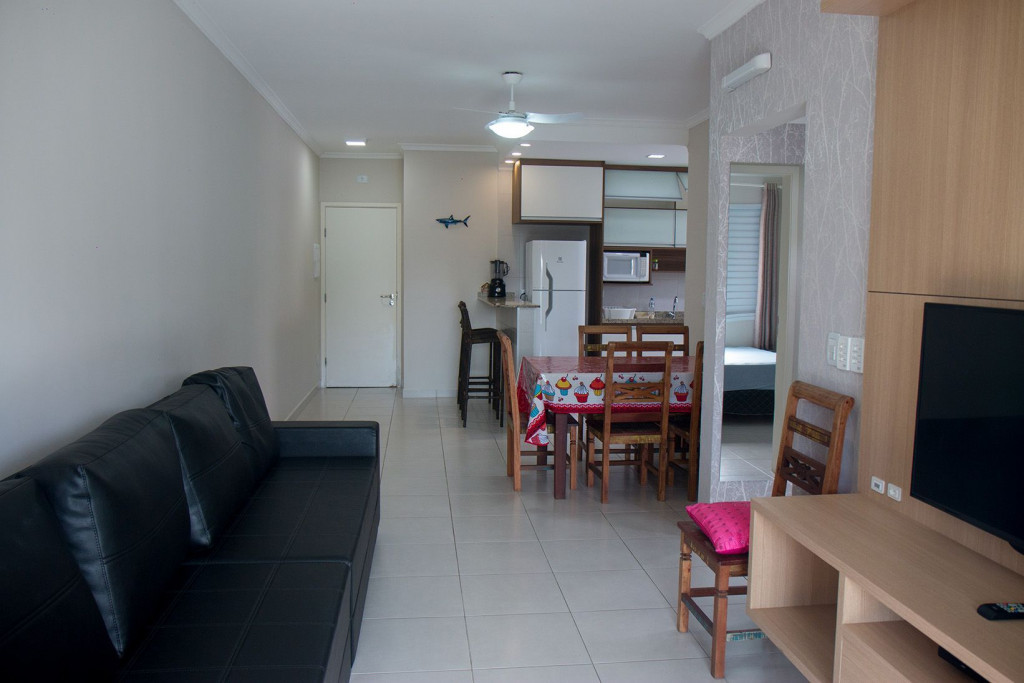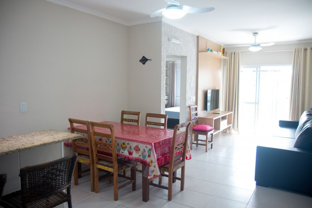 02 dormitórios com ar condicionado02 banheiros (sendo 01 na suíte)Sala com televisor 42’’ Churrasqueira na sacada *Sacada frente para rua/ Vista lateral para praia*01 vaga de carro
