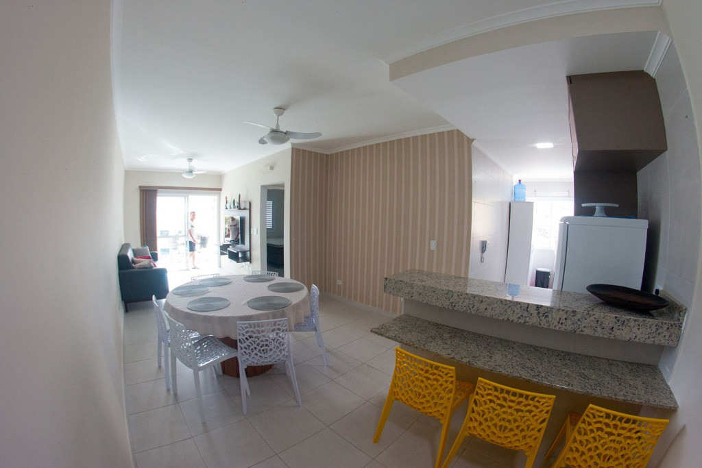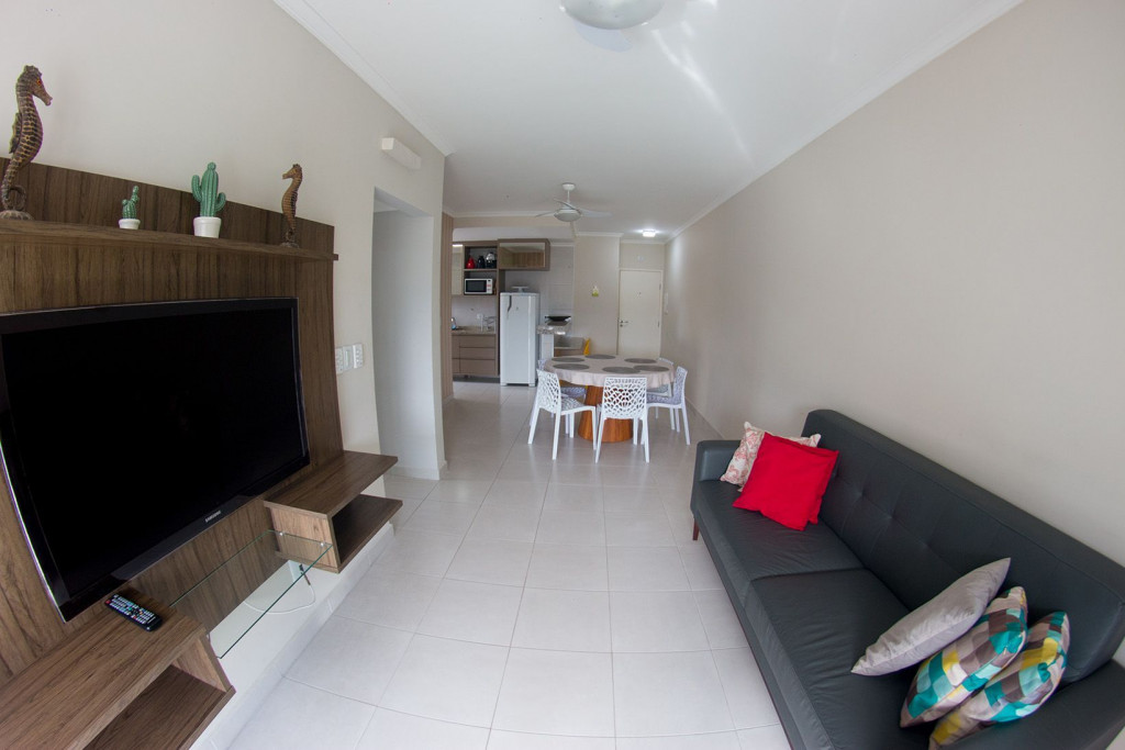 02 dormitórios sendo com Ar Condicionado ( sendo 1 suite )02 banheiros (sendo 01 na suíte)Sala com televisor 42’’ Churrasqueira na sacada Sacada frente para rua / Vista lateral para praia01 vaga de carro
