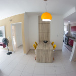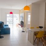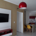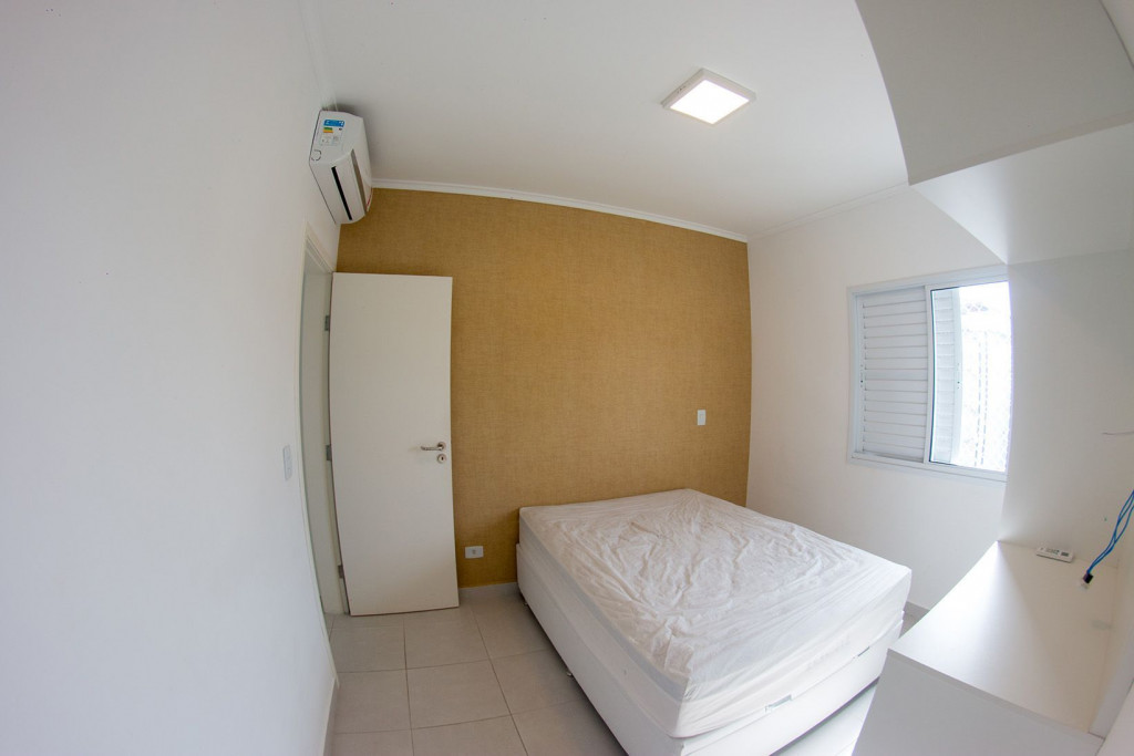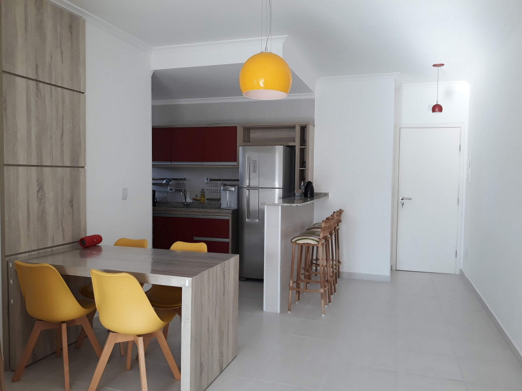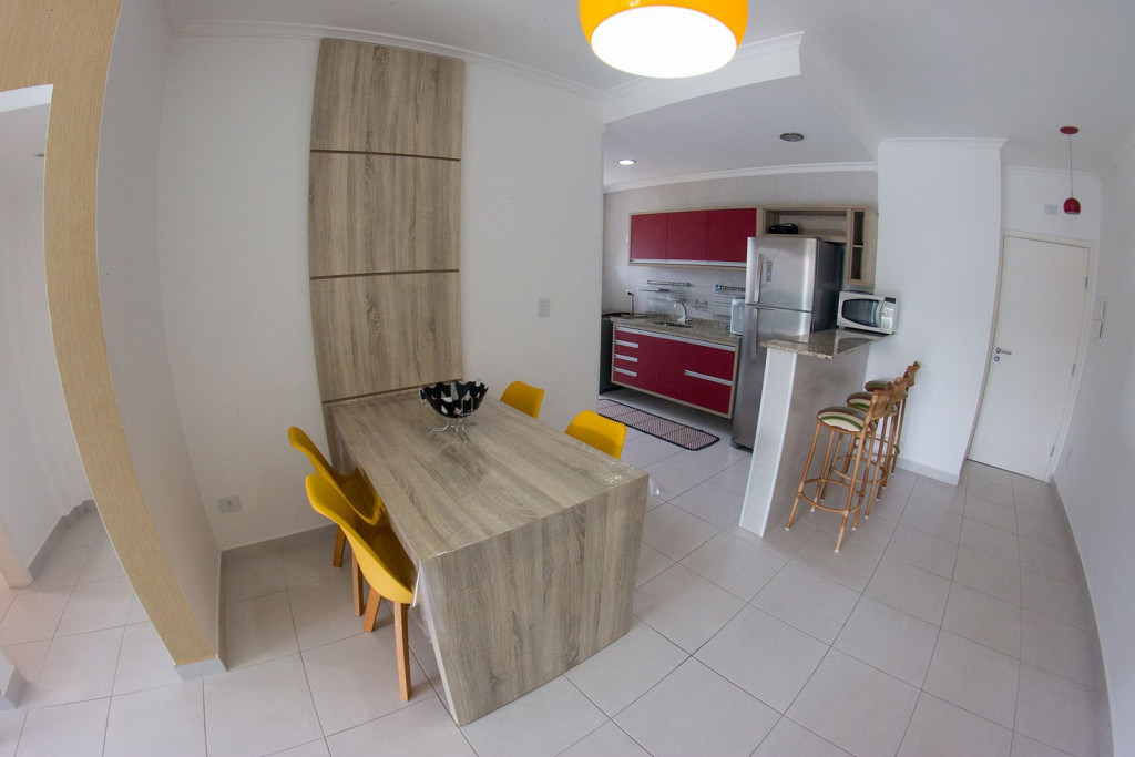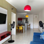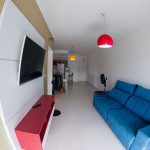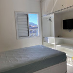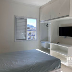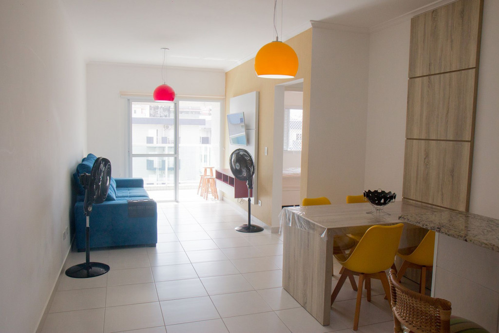 02 dormitórios com ar condicionado02 banheiros (sendo 01 na suíte)Sala com televisor 42’’Churrasqueira na sacadaSacada frente para rua / Vista lateral para praiaComprimento da vaga 9,30mts para os 2 veículos, considere o engate, caso tenha.