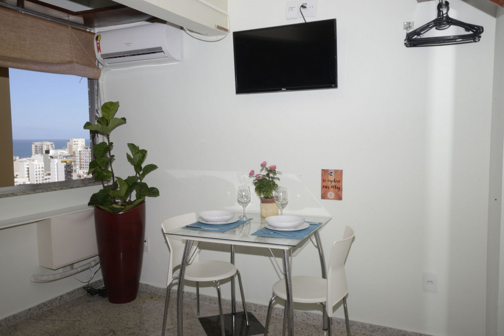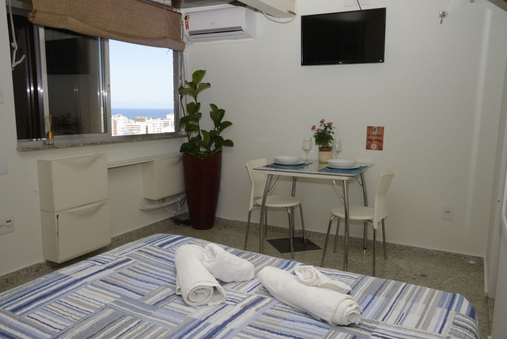 A Biahost oferece ótimo Loft, com incrível vista parcial para o mar, com cama de casal tamanho padrão, mini cozinha equipada com cooktop elétrico de 2 bocas, frigobar, utensílios, cafeteira elétrica e torradeira.Mesa de jantar/trabalho para 2 pessoas, ar condicionado split e banheiro privativo. TV LCD SMART, para maior conforto dos hospedes, com canais abertos brasileiros. Possui wifi Oi fibra. O Loft é simples, pequeno, não tem luxo, muito confortável, aconchegante e bem localizado.Os hóspedes terão o Loft inteiro para eles. Nada é compartilhado. Tem privacidade, conforto e comodidades, como TV, wi fi, cozinha compacta, frigobar, água quente no banheiro, por um valor bem acessível no melhor bairro do RJ. Ao lado da Praia de Ipanema e Lagoa, colado nas baladas, restaurantes, lojas, pizzarias, comércio e transportes (faz tudo a pé). Desfrutam de silêncio, além de um refrescante ar condicionado. Na melhor localização de Ipanema, na Rua Alberto de Campos esquina com a Rua Farme de Amoedo. Ao lado do metrô e Lagoa Rodrigo de Freitas. A cozinha é compacta, perfeita para pequenas e rápidas refeições. Oferecemos cafeteira elétrica e torradeira e fogão elétrico de 2 bocas. Não recomendamos para preparo de grandes refeições.O prédio oferece um mini mercadinho, excelente com bebidas, material de limpeza, alimentos, sorvetes disponíveis para à venda (pagos à parte, claro!).Prédio seguro, com portaria 24 horas, câmeras, bicicletário e muitíssimo bem localizado (no coração de Ipanema).A equipe da Biahost terá um enorme prazer em receber você e sua família ou amigos.