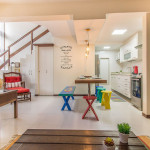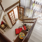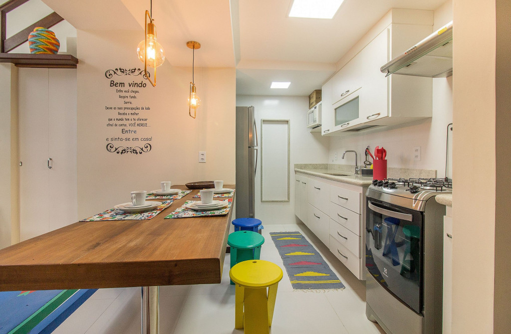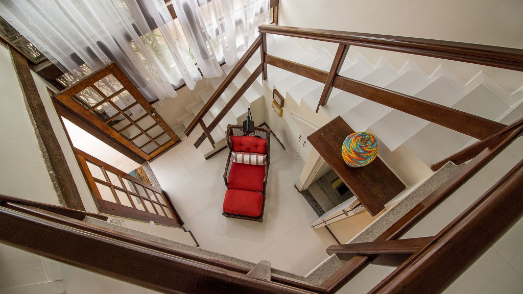 Segundo andar são 2 quartos e um banheiro. Tem uma confortável suíte de casal com ar condicionado split, mesas de cabeceiras ao lado da cama e armário. O banheiro tem box blindex, finamente decorado, água quente. Tudo com muito aconchego, bom gosto e conforto .O outro quarto possui 2 camas de solteiro, mesas de cabeceira ao lado das camas, armário e ar split. Oferecemos 2 colchonetes extras avulso. Banheiro completo no corredor.A casa foi projetada para acomodar em camas 4 pessoas. Duas pessoas teriam que dormir em colchonetes. A casa tem uma área gourmet muito acolhedora com coocktop e filtro de água, todos os utensílios de cozinha necessários. Podendo fazer reuniões com familiares e amigos. A cozinha é um destaque da casa. Merece ser comentada a parte. Ela é integrada a sala, sendo possível confraternizar com a família e amigos, preparar deliciosas refeições. A louça é completa, de boa qualidade, paneleiro completo, todos novos.A área gourmet possui um coocktop, filtro de água, mesa de apoio com banquetas. Não oferecemos churrasqueira, mas os hospedes podem trazer uma pequena churrasqueira. O Condomínio Village Flamboyant possui uma área verde maravilhosa, piscinas e quadras de esporte.