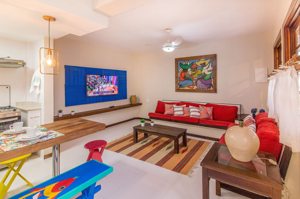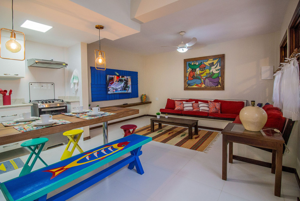Fica 1,4 km da Praia de Geribá (5 minutos de carro), 3,4 km da Rua das Pedras (11 minutos de carro), 1,2 km do Polo Gastronômico Porto da Barra (5 minutos de carro), 450m da Praia de Manguinhos (6 minutos a pé).A área de lazer merece ser destacada por ser sensacional com quadra polivalente, piscina, salão de jogos (ping pong e totó) e ainda uma salão com TV para assistir jogos de futebol e salão gourmet.