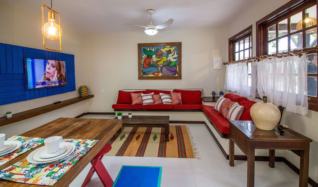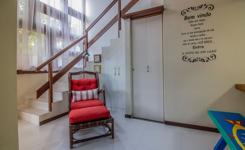 A Biahost oferece casa localizada no Condomínio Village Flamboyant em Manguinhos/Búzios, totalmente reformada com excelente padrão de decoração e conforto. Casa com 2 andares, área gourmet, garagem para até 2 carros. Wi Fi fibra e TV smart.Primeiro andar com sala aconchegante com Oi TV (canais básicos), TV SMART, sala integrada a cozinha completa, integrada ao ambiente de jantar e ao canto de leitura. Uma integração aonde todos se comunicam, desfrutam de momentos juntos com a família e amigos.Primeiro andar conta ainda com um Banheiro lavabo.