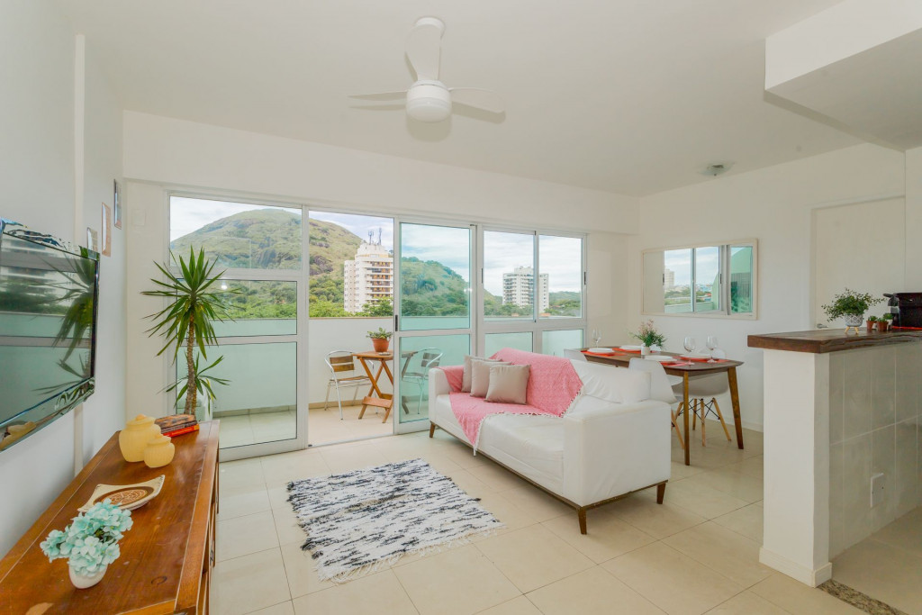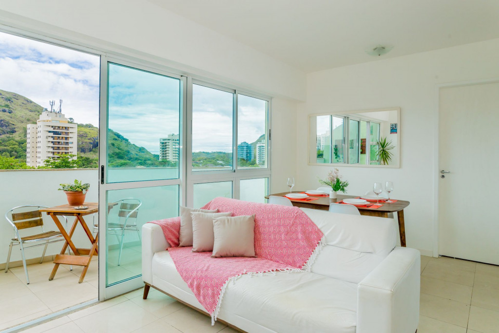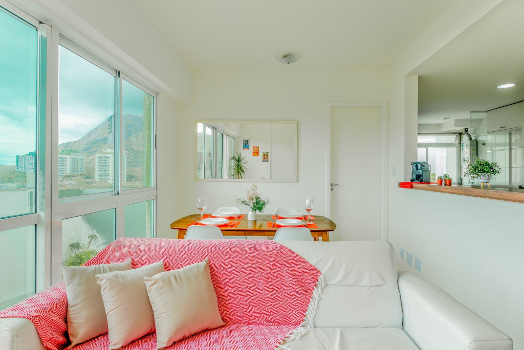 O apartamento tem dois andares, é amplo, completo, bem decorado, com bom gosto, aconchegante, acolhedor, com uma varanda muito agradável, com uma vista incrível para o verde e as montanhas, trazendo uma sensação de paz e tranquilidade. São 3 quartos espaçosos com camas confortáveis e amplos armários, possui 2 banheiros completos e 2 lavabos, cozinha completa, com lavanderia, além de um escritório perfeito para a prática de um Home Office tranquilo e produtivo. Oferecemos uma boa Internet e TV SMART na sala com canais básicos. Disponibilizamos roupas de cama e toalhas de banho para maior comodidade. Apartamento colado no Recreio Shopping, o que torna super prática a estadia. O shopping possui excelentes lojas, ótimos restaurantes, banco, Correios, Supermercado Pão de Açúcar. O apartamento ainda fica ao lado das mais lindas Praias como: Praia da Macumba, Prainha, Praia do Secreto, Praia do Recreio, todas essas com acesso por menos de 7 minutos de carro.Somos pet friendly. Aceitamos somente 1 pet por reserva, de pequeno porte (até 10 kg) e cobramos uma taxa única pelo pet. SE FOR TRAZER O SEU PET, PEDIMOS QUE NOS CONSULTE ANTES DE REALIZAR A RESERVA.OBS: Está tendo uma obra nos corredores do prédio, o que pode ocasionar algum barulho durante o dia.