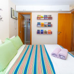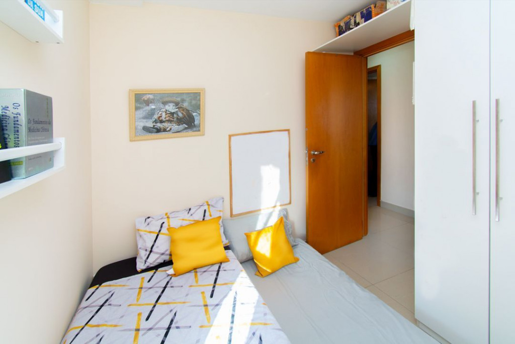 Quarto 2: Uma cama de solteiro com 1 cama de solteiro auxiliar, ar condicionado e guarda roupa. Quarto 3: cama de casal padrão, ar condicionado, cortina black out, TV com canais a cabo intermediários.