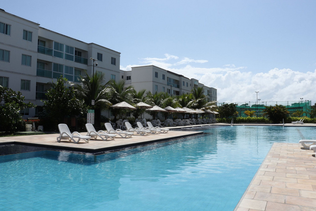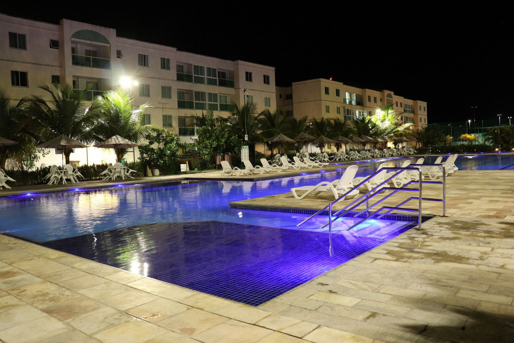 Nossos hóspedes apreciam as piscinas externas, quadras esportivas, parquinho infantil, brinquedoteca, sala de jogos, sala de ginástica, área para refeições, área de estar e o estacionamento grátis sem manobrista (1 vaga). As principais comodidades no imóvel: Wi-Fi grátis no apartamento, TV Smart, ar condicionado split e chuveiro elétrico.