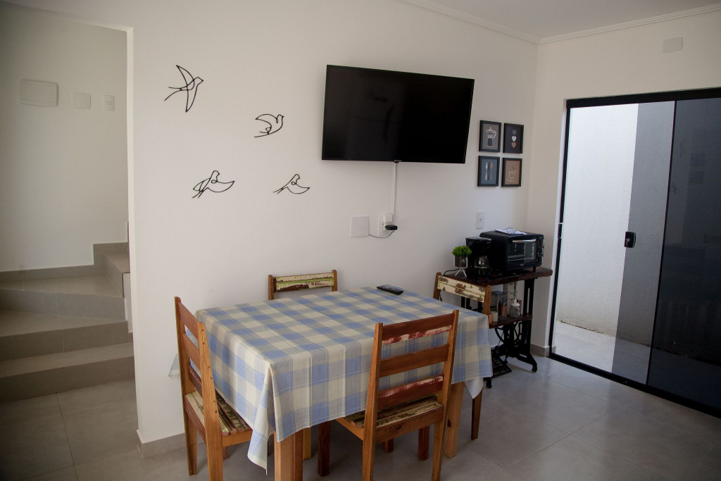 Espaço montado com todos carinho para receber nossos hóspedes. A casa conta com dois quartos, sendo um com cama de casal e outro com uma beliche de solteiro. Assim comportando confortavelmente 04 pessoas.
