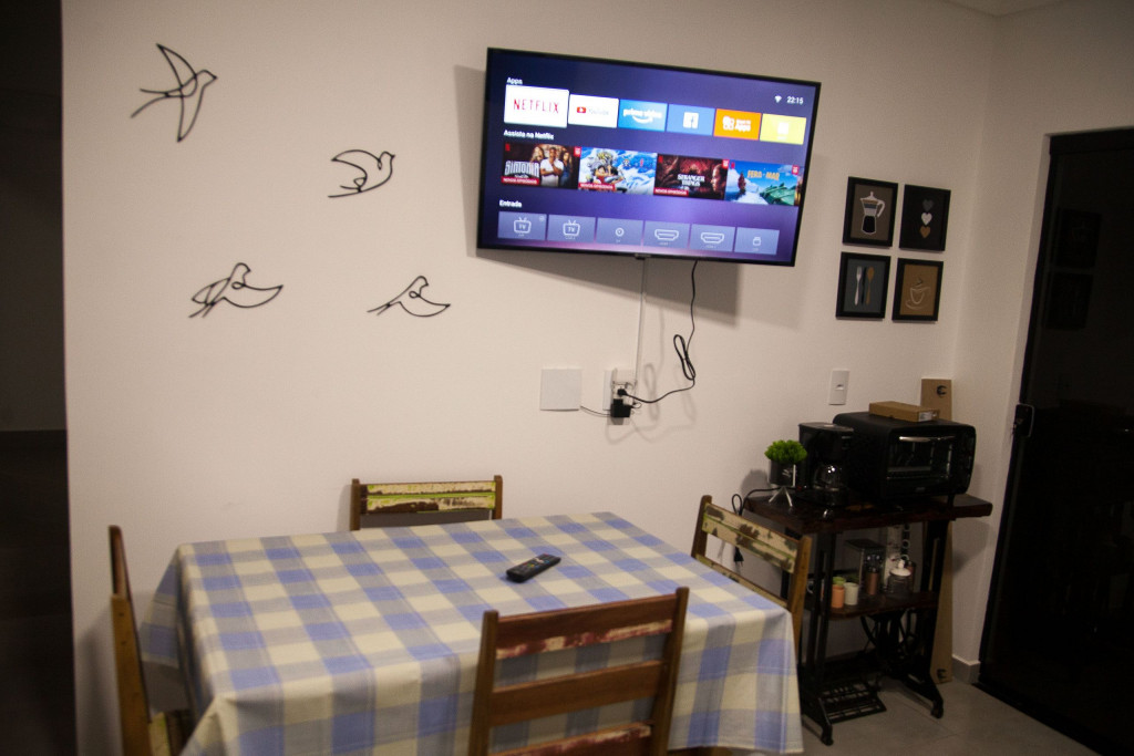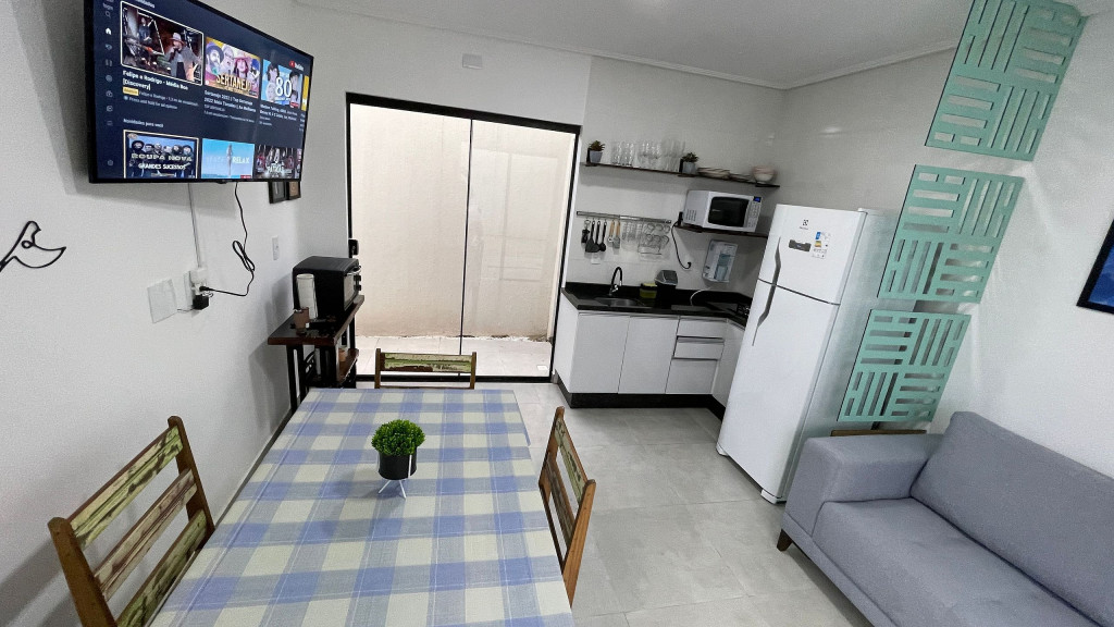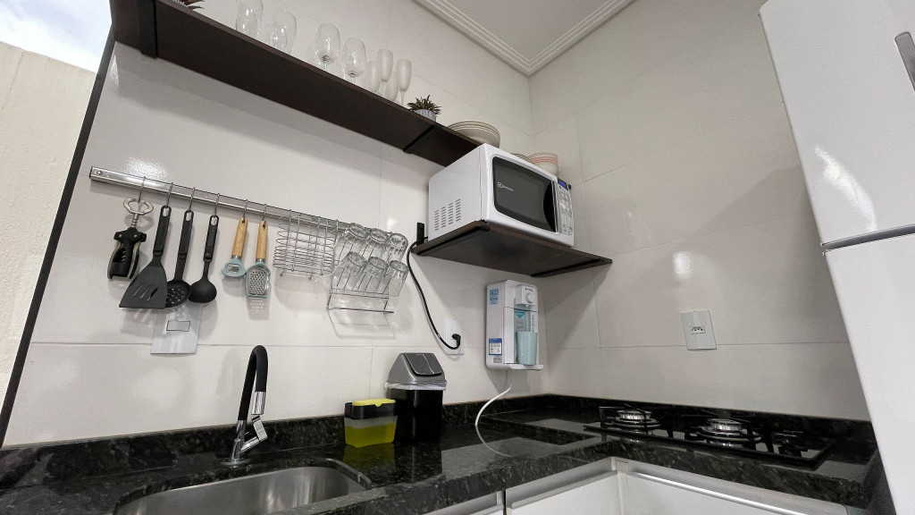 Cozinha equipada, Smart Tv, internet de 300mb, geladeira, forno elétrico, fogão a gás, cafeteira elétrica, espaço para trabalho, uma vaga de garagem, wi-fi, disponibilizamos roupa de cama e banho.