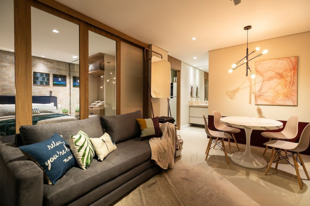 Apartamento moderno e ambientado com muito carinho dispondo de tudo que você precisa para uma hospedagem confortável. Situado a uma quadra da avenida Jorge Schimmelpfeng, no centro de Foz do Iguaçu, possibilitando acesso à pé aos mais famosos bares e restaurantes da cidade (Capitão Bar, Bona Trattoria, Rafain Chopp, Maki Sushi, Imperador dos Camarões, ...).