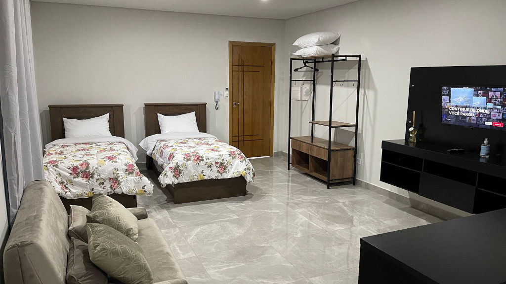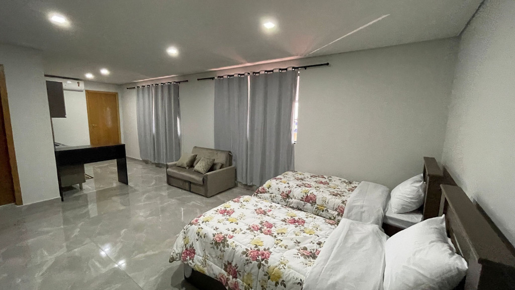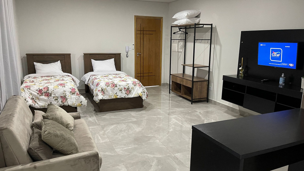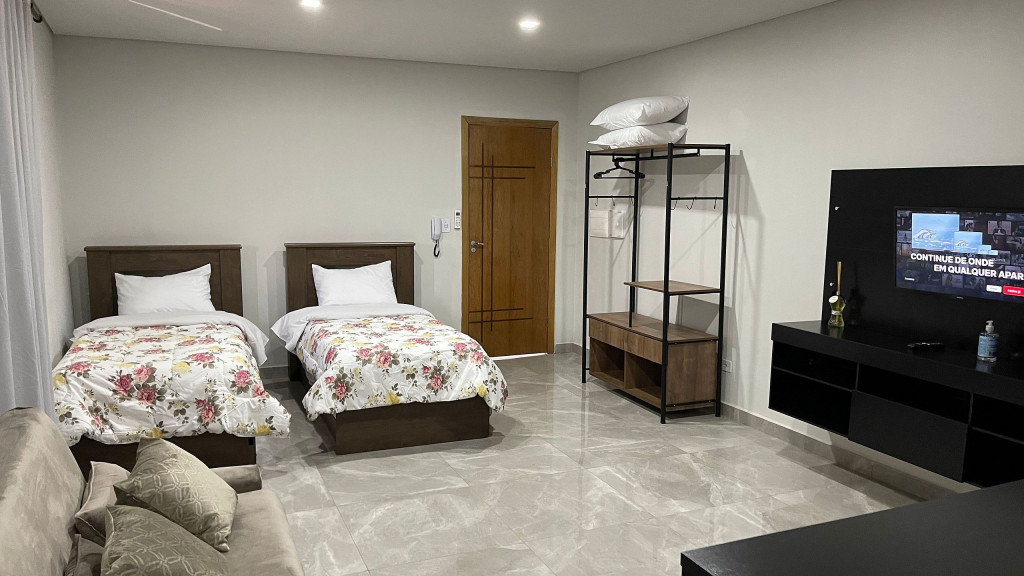 Para quem vem a turismo também é uma ótima opção. O prédio fica próximo a Mesquita, de fácil acesso ao trajeto da Itaipu, templo Budista e rota para as Cataratas e outros pontos turísticos. Equipado com cozinha completa, cama confortável, mesa para trabalhos e refeições, TV, ar-condicionado, jogo de cama e banho segurança exclusiva do prédio e Wi-fi.