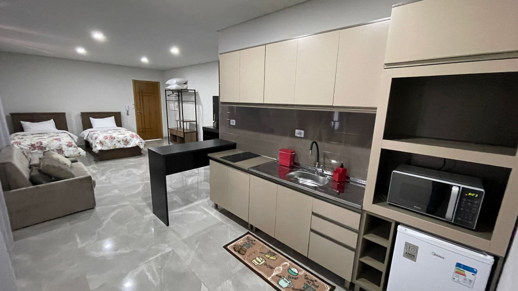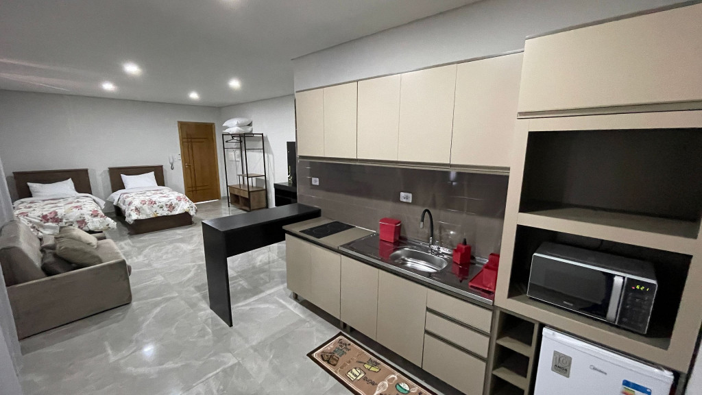 Novo apartamento Studio situado no polo comercial de Foz. A poucos metros da Ponte da Amizade, sendo uma ótima opção para quem vem conhecer Foz e comprar no Paraguai. Próximo a supermercados, posto de gasolina, lojas de conveniência, caixa eletrônico, terminal rodoviário, farmácias, lanchonetes e das principais lojas da Vila Portes.