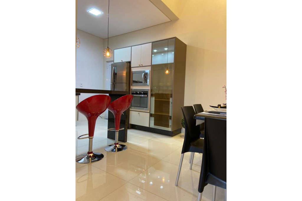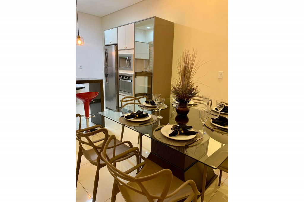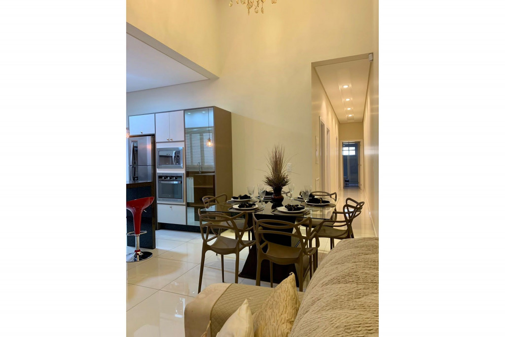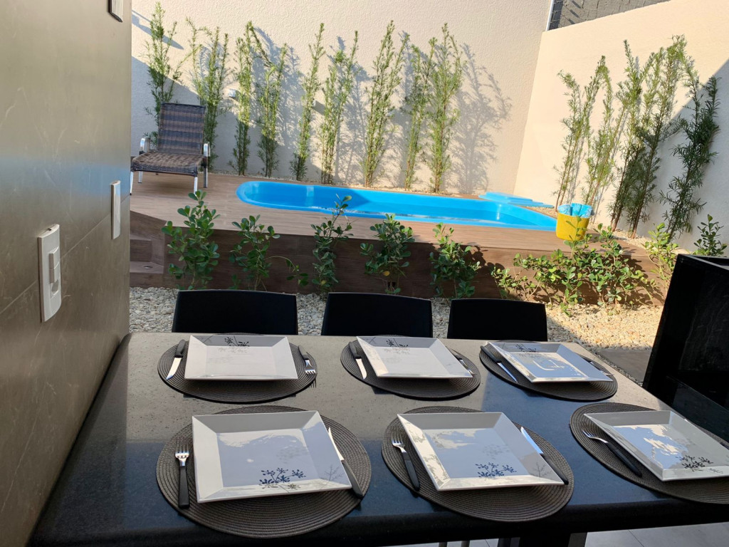 Todos os itens das fotos estão disponíveis na acomodação. Casa inteira com 3 quartos, sendo uma suíte e mais 1 banheiro. Ampla cozinha, sala de jantar, sala de estar/TV, lavanderia com máquina de lavar, área de churrasqueira Gourmet e piscina, garagem para 3 carros.