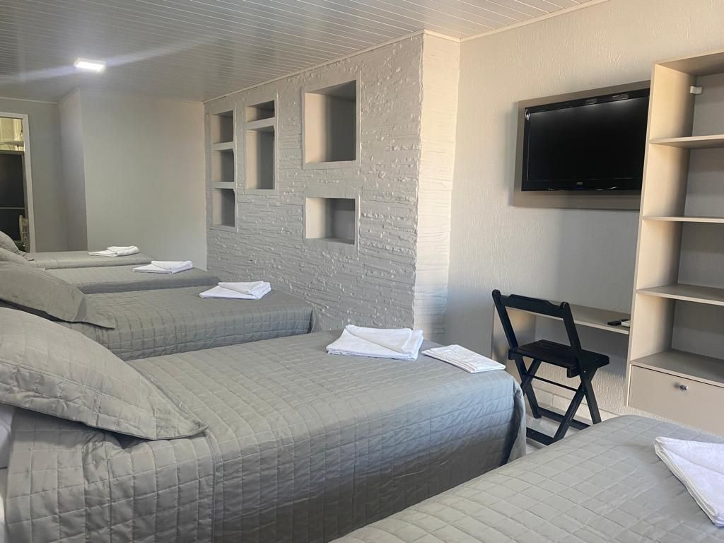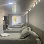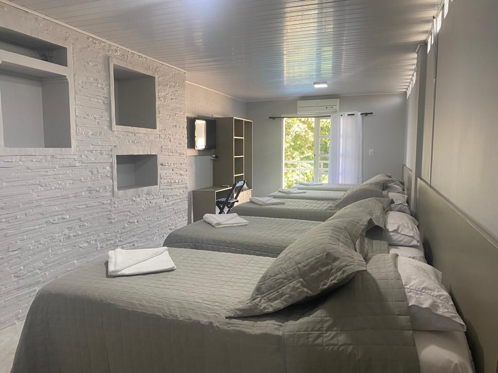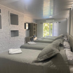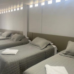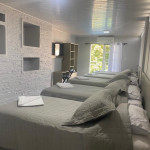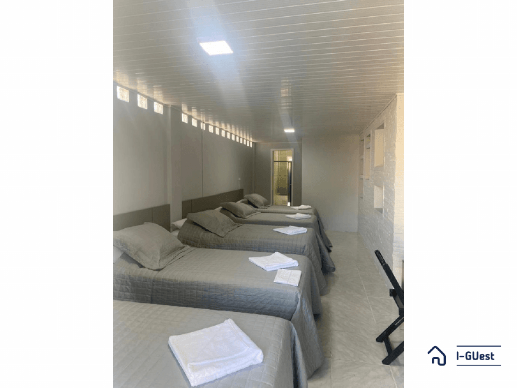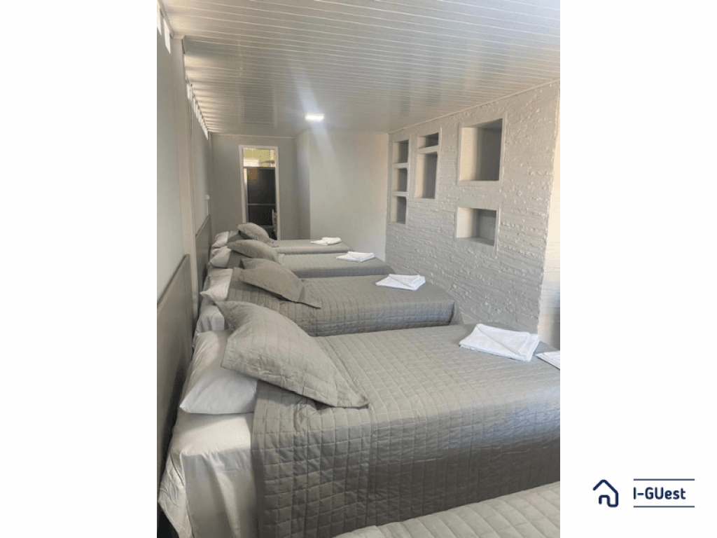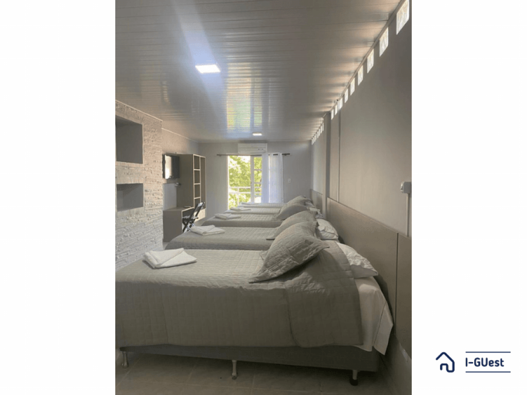 O quarto contém 05 camas de solteiro sendo 02 com camas auxiliares. Assim comportando até 07 pessoas. Chuveiro elétrico e uma mesa para trabalho e/ou estudos. Todos os quarto contém enxoval 150 fios que proporcional conforto e qualidade.