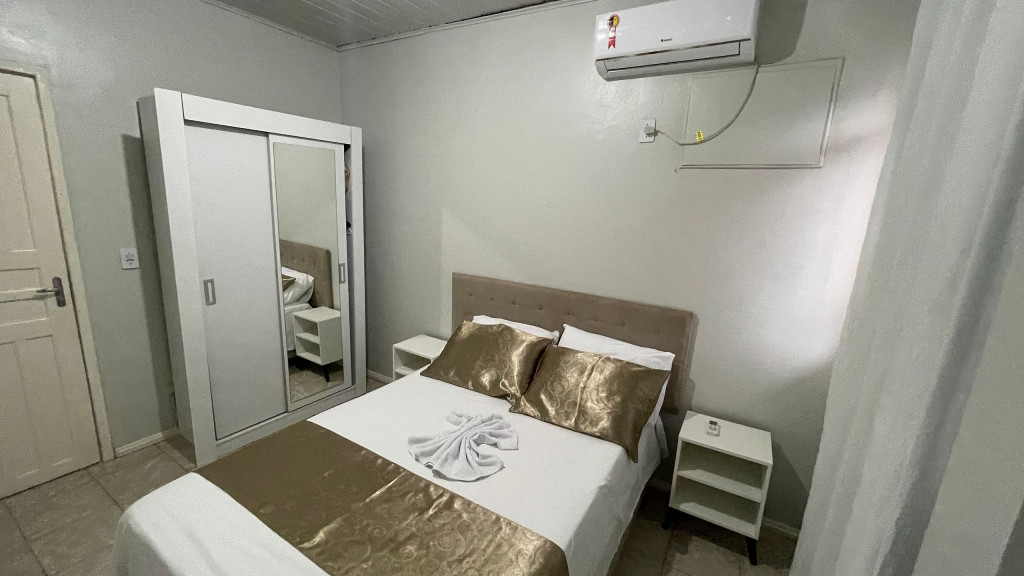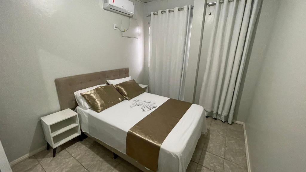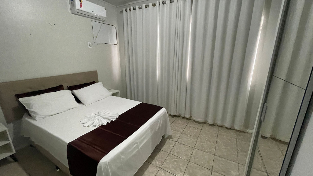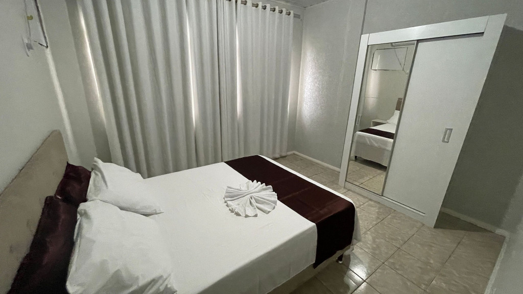 Apartamento grande e espaçoso, composto por 4 quartos (sendo 1 suíte), ar condicionado em todos os quartos, possui sala de jantar, cozinha completa, sala com TV smart 32'' , banheiro social com ducha, lavanderia com máquina de lavar, área externa com churrasqueira e mesa para desfrutar bons momentos, garagem privativa para até dois carros, WI-fi . Para maior conforto dos hospedes oferecemos roupas de cama e banho, travesseiros, cobertores.