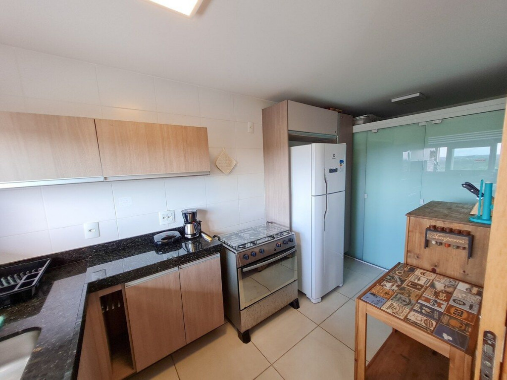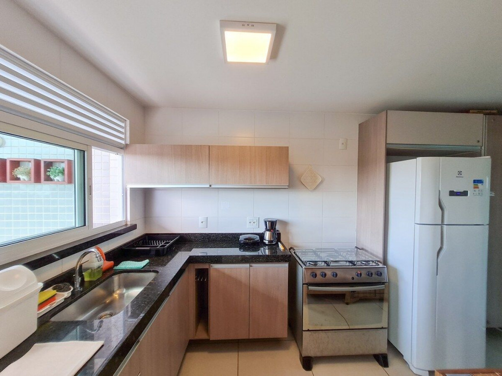 AMBIENTE 3 - COZINHA Uma charmosa e aconchegante cozinha completa e equipada com tudo que você precisa para desfrutar de dias incríveis conosco. Geladeira, microondas, filtro de água, sanduicheira, liquidificador, cafeteira elétrica e de garrafa, panela de pressão, triturador de alho, espremedor de frutas, forno, fogão, armários embutidos, pia, utensílios de cozinha como pratos, copos (suco/água, wisque, cerveja, vinho, espumante, xícaras, copos e utensílios para crianças), talheres, vasilhas, itens para almoço, jantar e café da manha, fruteira, itens de churrasqueira, abridor de vinho, itens básicos de cozinha como sal, café, açúcar, temperos, azeite e itens básicos de limpeza como pano de chão, pano de prato, desinfetante, vassouras, rodos, pá de lixo.
