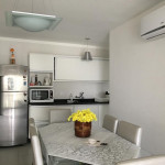 São 70 metros quadrados com varanda com churrasqueira, três dormitórios, sendo uma suíte, cozinha e sala integrados com decoração a moda praiana. Dois dormitórios e a sala de estar são climatizados com ar-condicionado. A suíte possui uma cama de casal, enquanto que os outros dois dormitórios possuem duas camas de solteiro, já na sala temos um sofá-cama de casal.A cozinha é equipada com fogão, forno elétrico, geladeira, microondas e todos utensílios necessários para fazer uma boa refeição. A sala climatizada possui uma TV 32''. Possuímos Wi-Fi no apartamento (100 mega), além da internet oferecida pelo próprio condomínio, rouparia de cama e banho completas e máquina de lavar roupas.