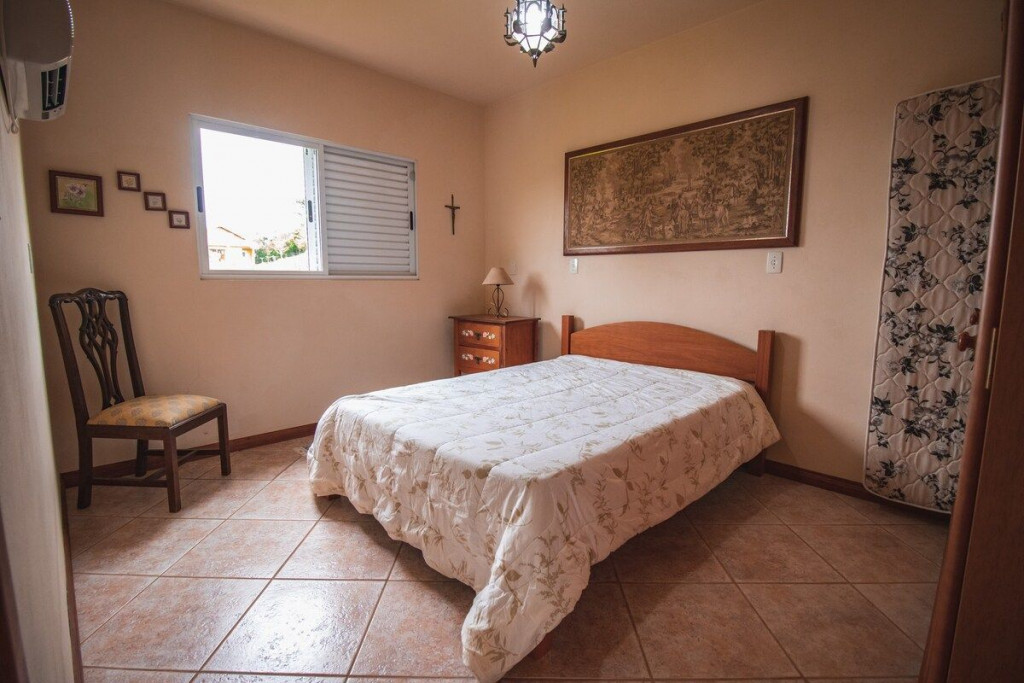 A casa é projetada para até 9 pessoas com o máximo de conforto. Ambientes amplos e aconchegantes são características do espaço que dispõem de dois dormitórios, sendo uma suíte com banheira. Além disso, possui sala de estar, cozinha, banheiro social e lavabo.Suíte: Cama de Casal, Cama de Solteiro e Banheira de Hidromassagem;Dormitório 1: Cama de Casal e Cama de Solteiro;Dormitório 2: Cama de Casal e Cama de Solteiro;