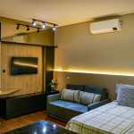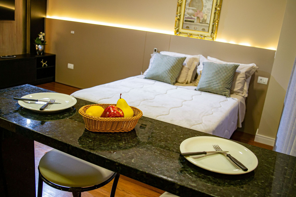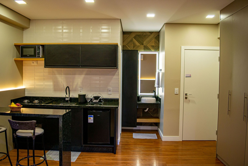 Seus apartamentos contam com cozinha equipada, Smart tv, cama confortável, ar-condicionado que refrigeram todo o espaço, central de trabalho/estudos, enxoval de cama e banho.