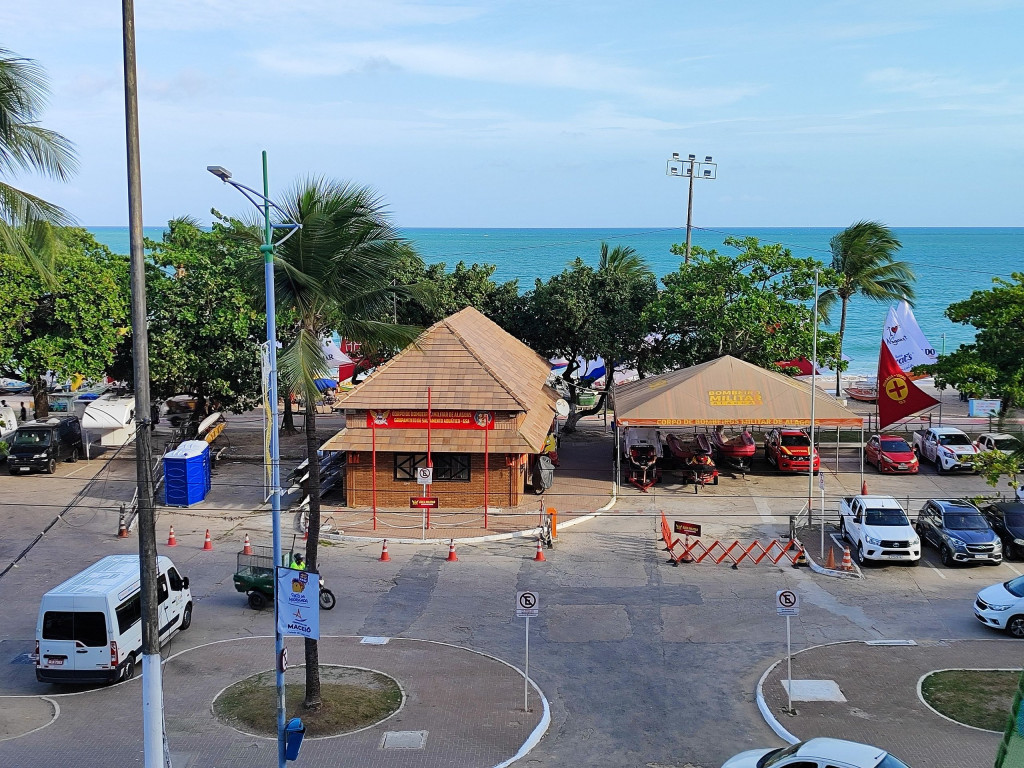 Apartamento amplo, confortável e bastante ventilado, frente-mar de Pajuçara, às margens da praia e do calçadão, próximo aos principais pontos turísticos e bares/restaurantes da orla, passeios e feiras de artesanato, farmácias e supermercados.