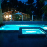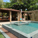 Temos duas áreas para churrasco na casa, todas com churrasqueiras apropriadas e apetrechos: uma com espetos giratórios elétricos na área gourmet da barraca da praia e outra no estilo "fogo de chão", movida à lenha e de pedra específica para churrasco, no gramado frontal (também serve como lareira para aquelas noites regadas a um bom vinho e em boa companhia).A piscina da casa dispensa quaisquer comentários. Em pedras estilo vulcânicas, com parte rasa, parte funda e hidromassagem com assentos, iluminação noturna e dotada de um deck de inspirar os nossos mais íntimos desejos de nos entregar à ociosidade e deslumbrar daquele ambiente tão agradável.