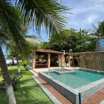 A Morada da Praia ainda possui lavanderia comum, churrasqueiras, chuveirões externos, poço artesiano, uma simpática pracinha com enormes bancos de jaqueira, um jardim com coqueirais, gramados e areia de praia, além de uma decoração praiana de saltar aos nossos olhos! A praia em frente, praticamente privativa, é protegida por arrecifes de corais, onde se pode tomar um banho de mar com águas mornas e límpidas com toda a tranquilidade.